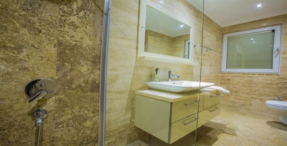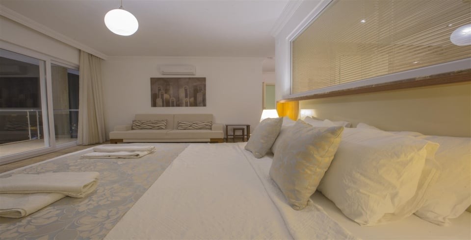 3. Yatak Odası : Çift kişilik yatak, klima, komodin, elbise dolabı, banyo ve WC bulunmaktadır.