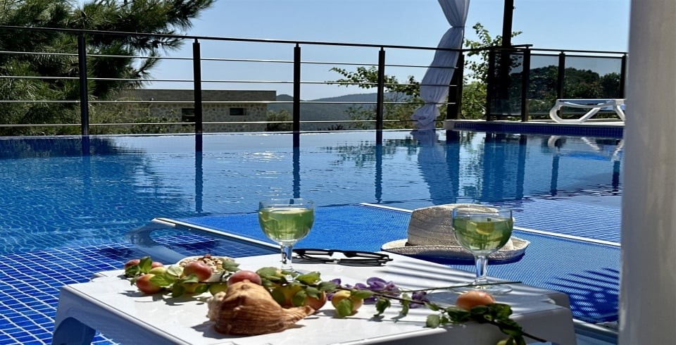 Havuz : Villamızın havuzu ise etrafı dışarıdan görülmeyecek şekilde korunaklı olup sizlere huzurlu ve keyifli havuz deneyimi sunmaktadır. Size özel muhafazakâr yüzme havuzu, şezlong keyfi ve şemsiye ile yazın en güzel günlerinde sizleri bekliyor.
