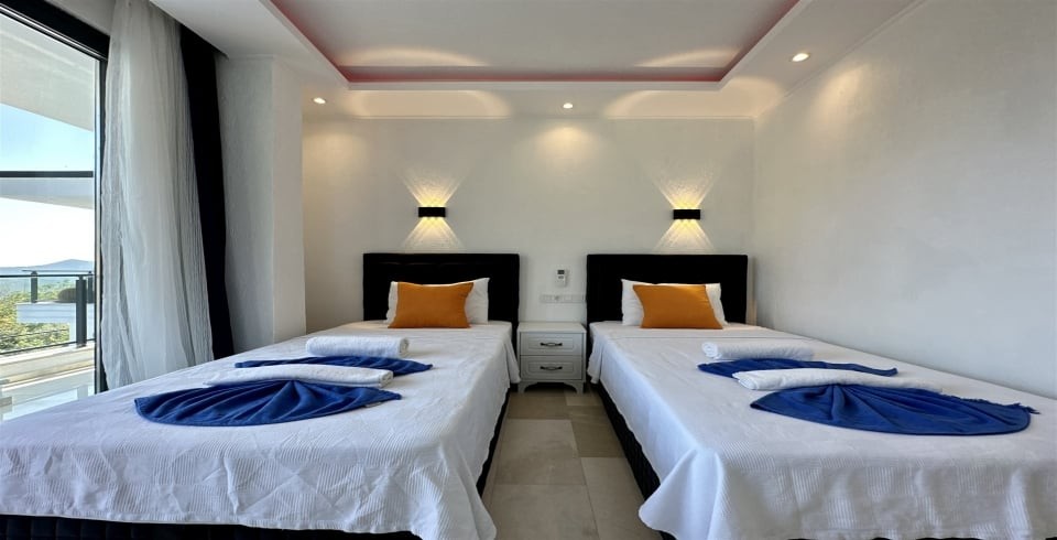 3. Yatak Odası : 2 adet tek kişilik yatak, klima, elbise dolabı, makyaj masası, banyo ve lavabo bulunmaktadır.