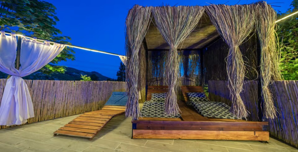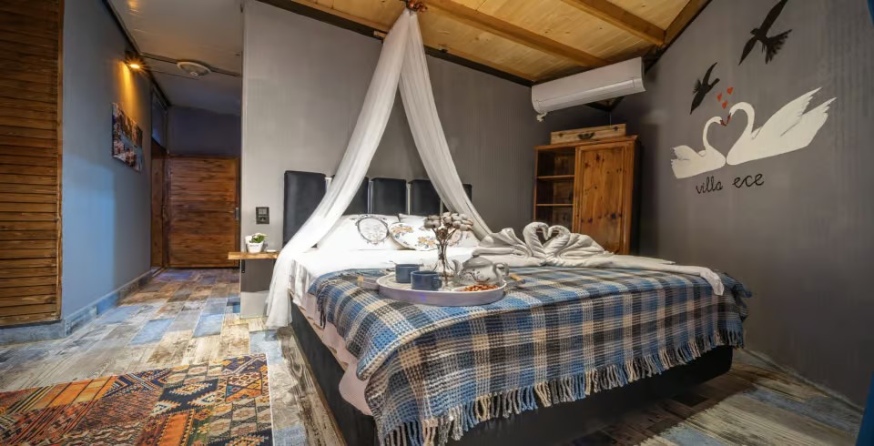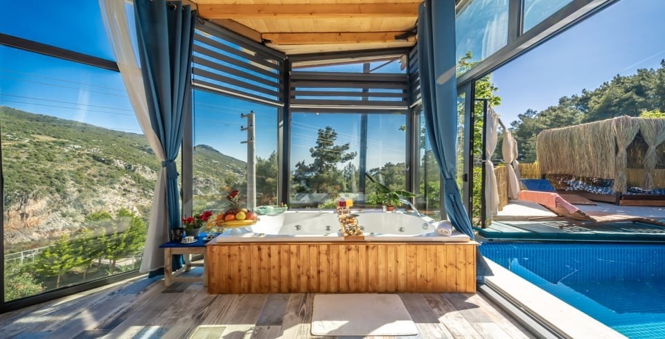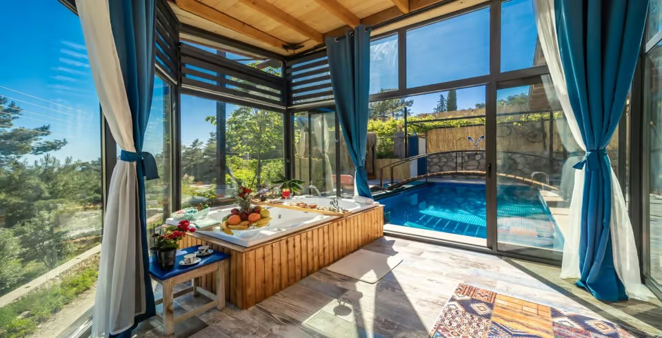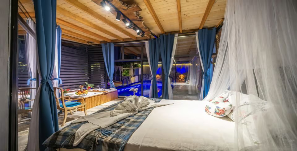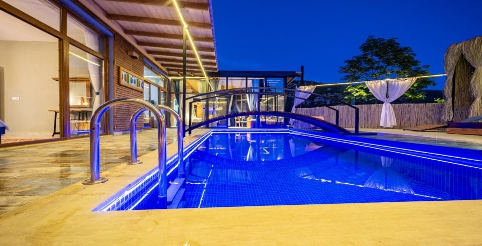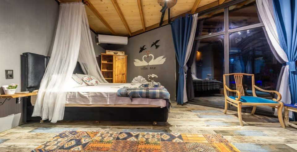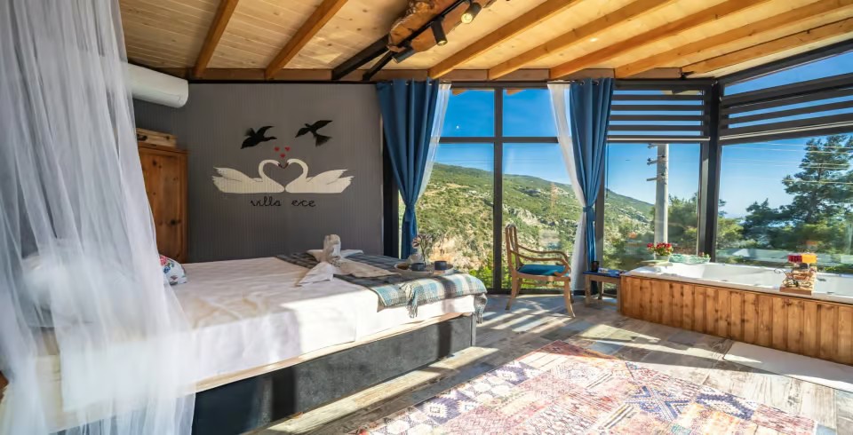 Kalkan İslamlar bölgesinde bulunan Villa Ece 40, özellikle balayı villası olarak dizayn edildiği için 2  yatak odalı ve çok şık bir jakuzi ile çiftlerimizin harika vakit geçireceği mini bir villadır. Havai havasında olan dış tasarım ile doğa içinde huzur bulabileceğiniz bu villamız, tercihe bağlı korunaklı havuz terasında eşinizle jakuzi keyfi sürebilirsiniz. Özel yüzme havuzumuz dışardan kesinlikle görünmemekte olup muhafazakâr eşler için özel düşünülmüştür. Sizde bu villa ile harika vakitler geçirebilir ve kuş sesleri eşliğinde tatilinizi gerçekleştirebilirsiniz. Markete 600 metre, restoranda 100 metre havalimanına ise 125 kilometredir.