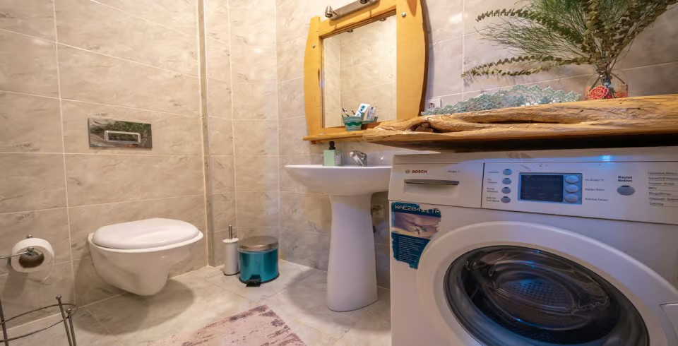 Mutfak: Modern Amerikan mutfak, buzdolabı, bulaşık makinesi, çamaşır makinesi, ankastre fırın, 4’lü ocak ve mutfak araç gereçleri bulunmaktadır.