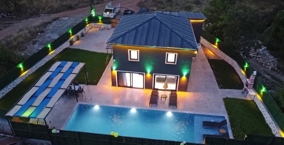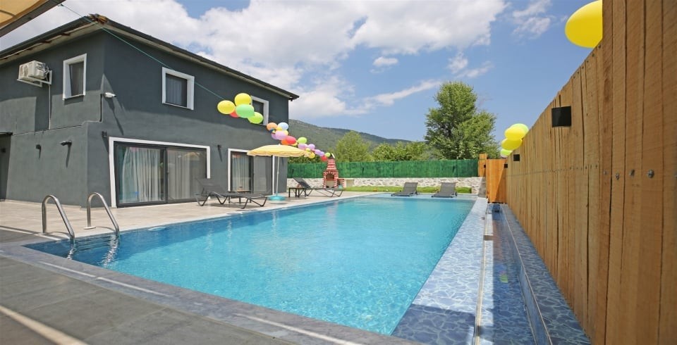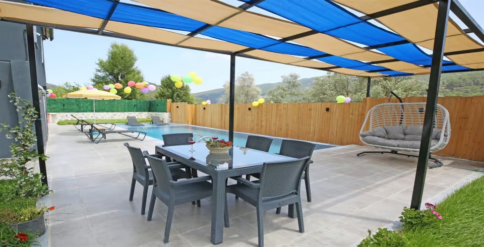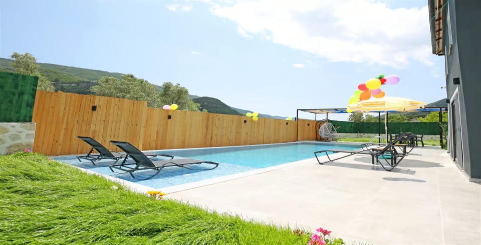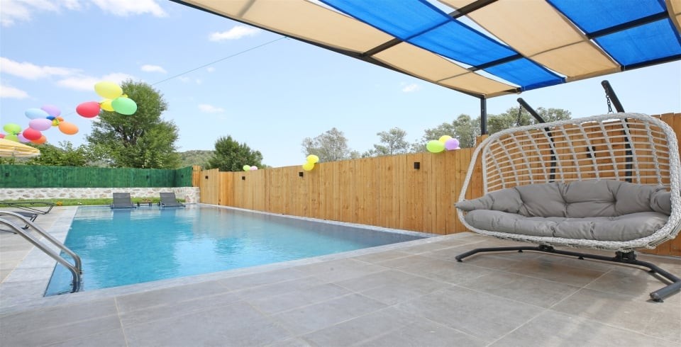 Havuz ve Bahçe : Özel yüzme havuzu, yemek masası, şezlong, şemsiye, salıncak ve barbekü bulunmaktadır.