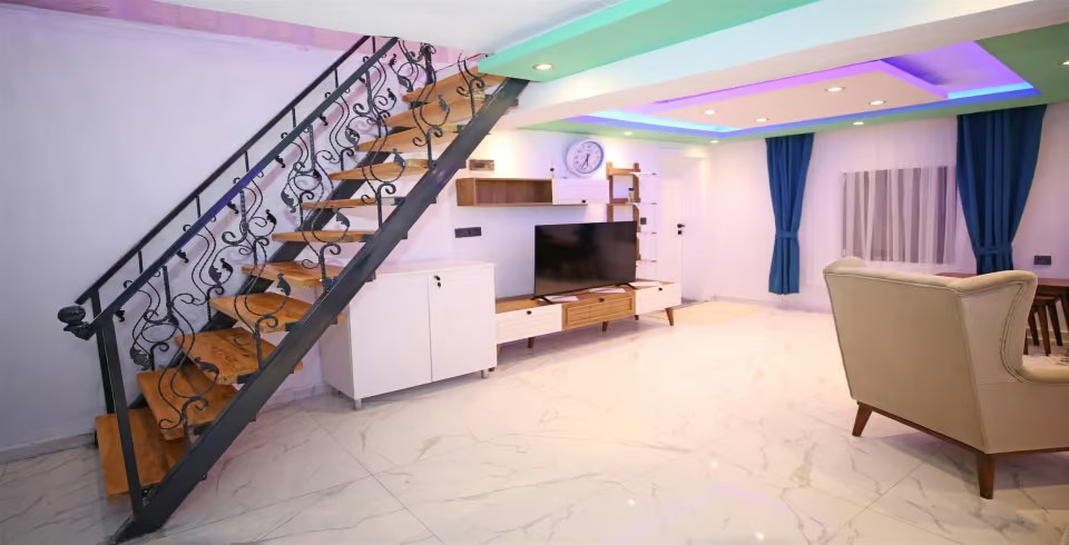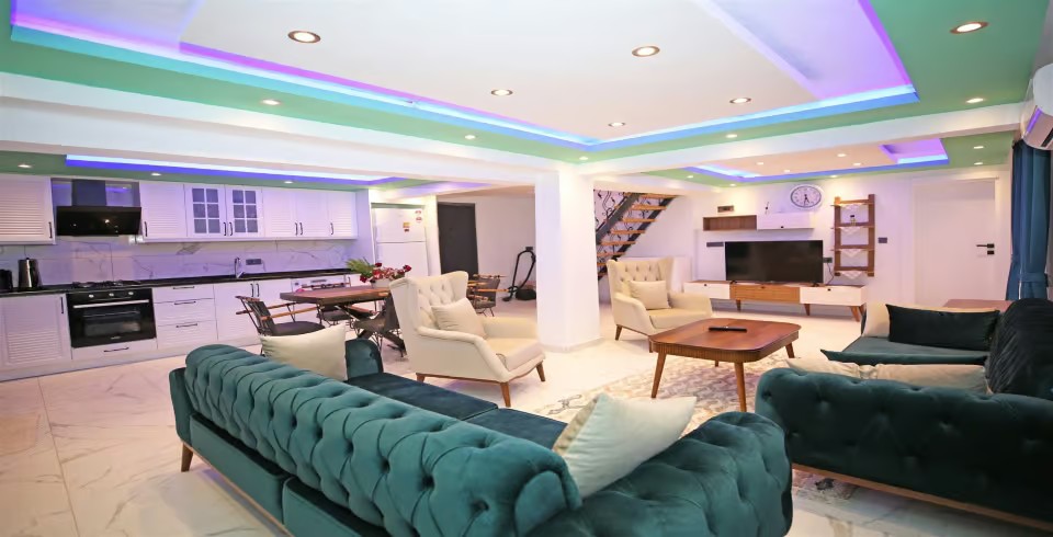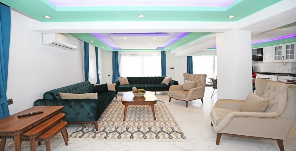 Salon : Oturma grubu, tv, internet, klima, yemek masası, sehpa bulunmaktadır.