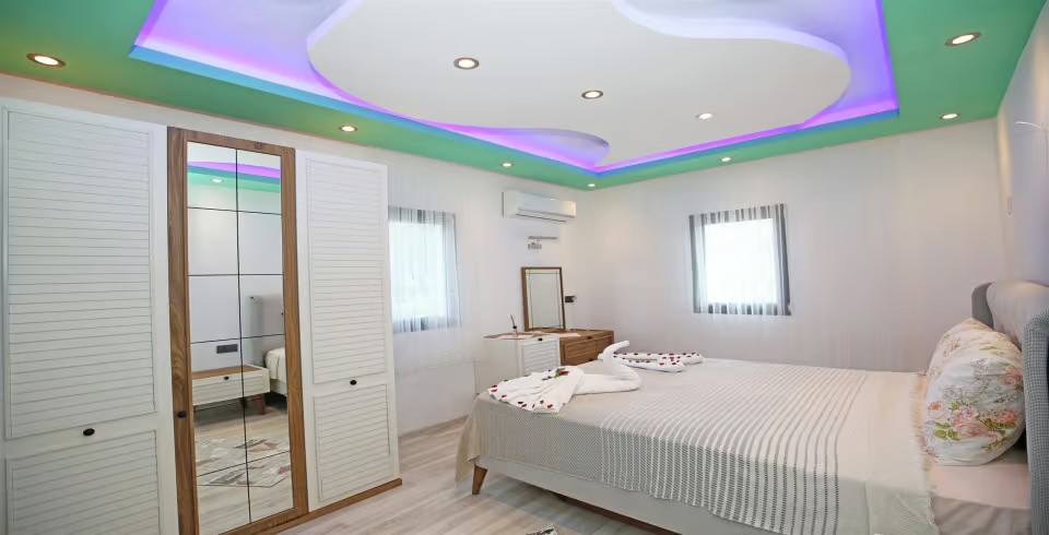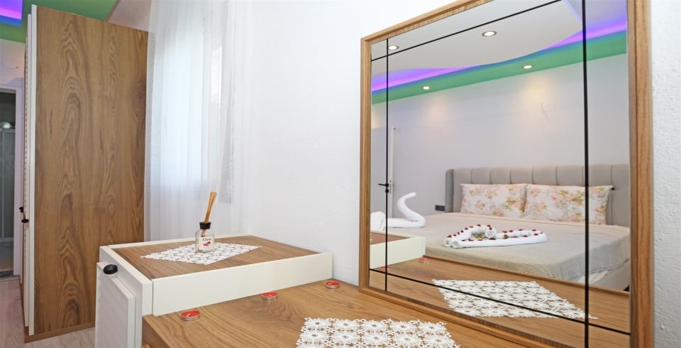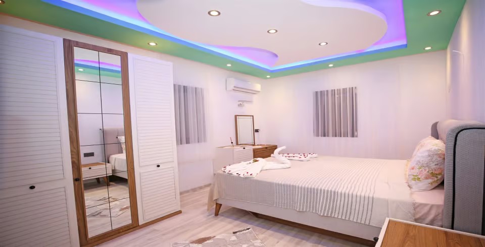 1. Yatak Odası : Çift kişilik yatak, elbise dolabı, makyaj masası, klima, banyo ve tuvalet bulunmaktadır.
