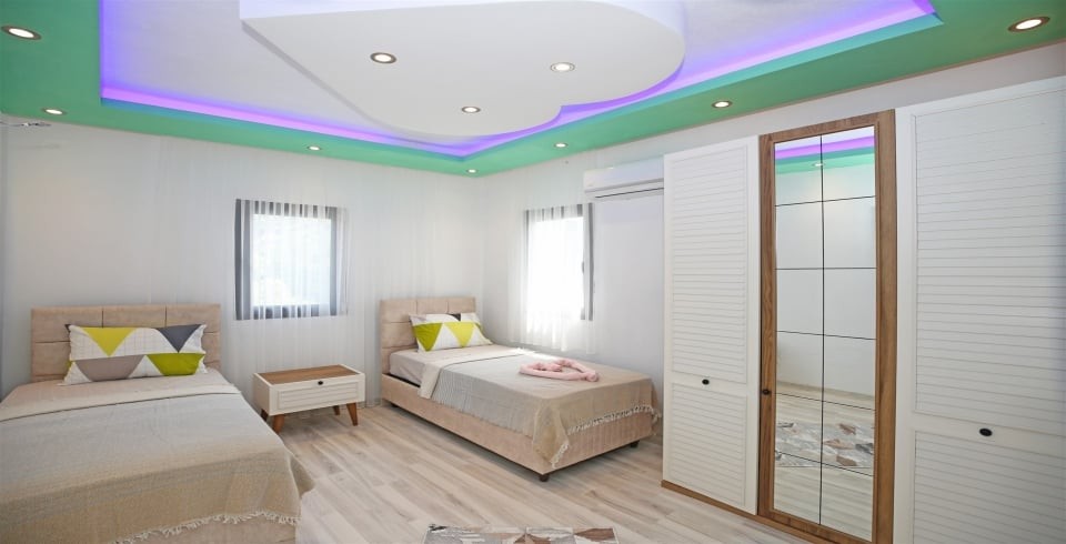 2. Yatak Odası : 2 adet tek kişilik yatak, elbise dolabı, makyaj masası, klima, banyo ve tuvalet bulunmaktadır.