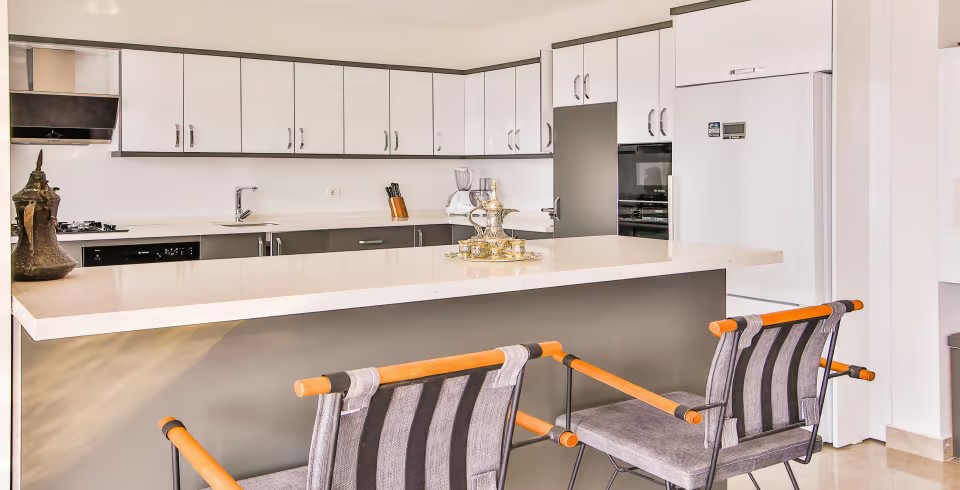 Muftak : Amerikan tarzı mutfağa sahip olan villanın mutfağında aradığınız tüm mutfak araç gereçlerini bulabilirsiniz., buzdolabı, bulaşık makinesi, çamaşır makinesi, yemek masası, fırın, 4’lü ocak, mikrodalga fırın, tost makinesi, kettle, 6 kişilik yemek takımı, tava, tencereler, çatal, bıçak takımı bulunmaktadır.