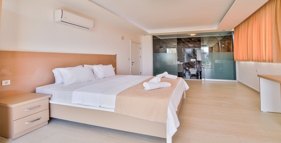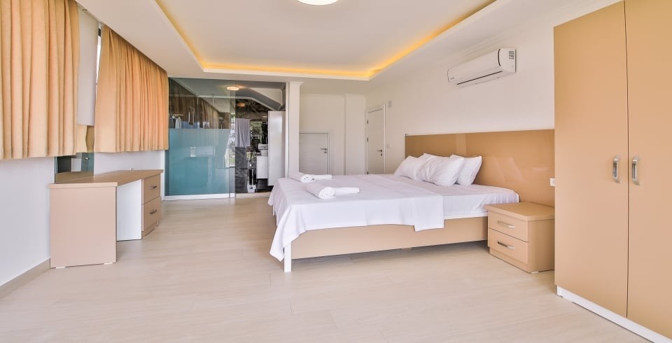 1. Yatak Odası : Çift kişilik yatak, elbise dolabı, komodin, makyaj masası, klima ve banyo bulunmaktadır.