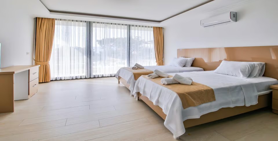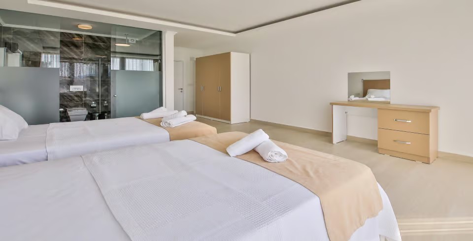 3. Yatak Odası : İki adet tek kişilik yatak, elbise dolabı, komodin, makyaj masası, klima ve banyo bulunmaktadır.