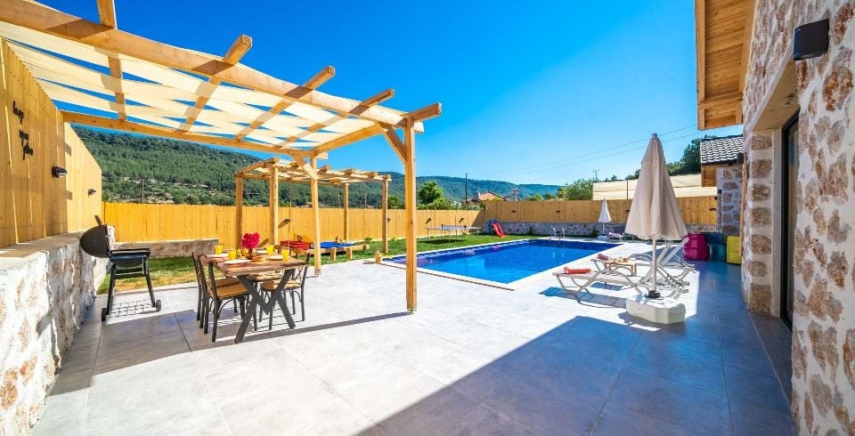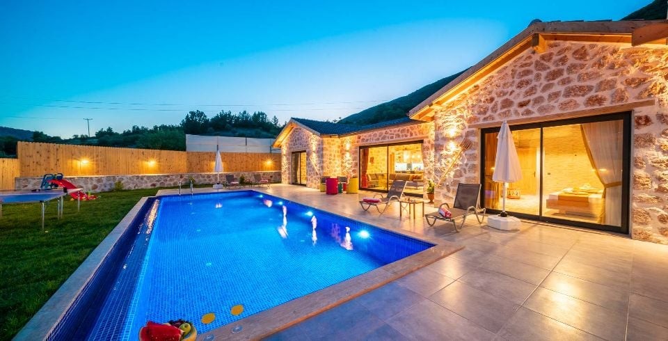Villa Ediz Kalkan Sarıbelen bölgesinde yer almaktadır. 2 yatak odasına sahip tatil villamız 4 kişilik konaklama kapasitesine sahiptir. Doğa içinde bir konuma sahip olan tatil villası havuz alanı bahçe alanı ile sizlere keyifli bir tatil ortamı sunmaktadır. Özellikle aileler için ideal bir seçenek olan Villa Edizmuhafazakar hassasiyete sahip misafirlerimiz içinde uygun bir tatil ortamı sunmaktadır.