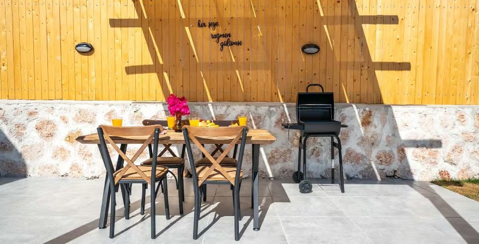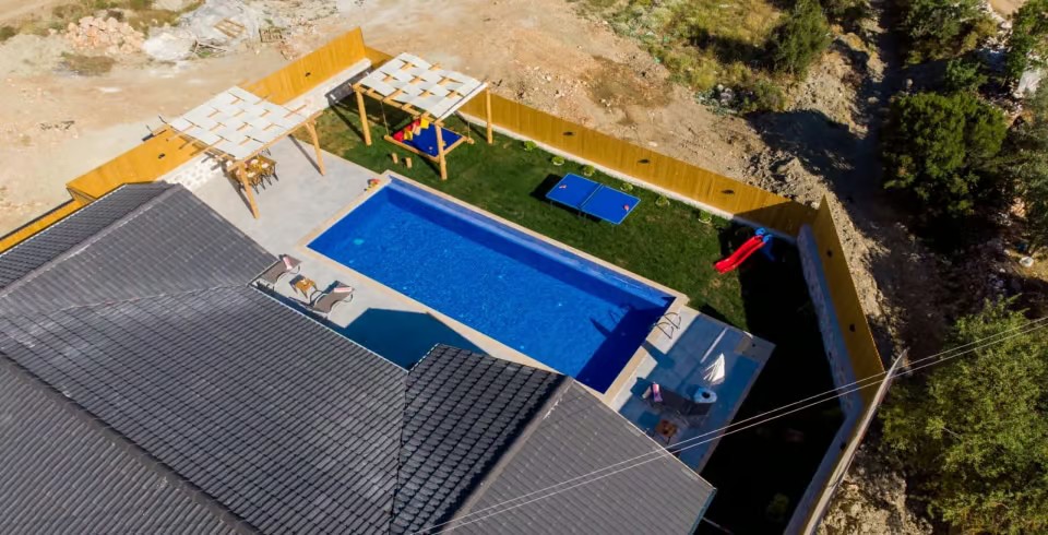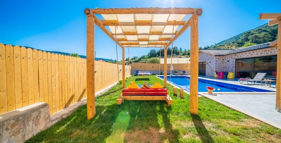 Havuz ve Bahçe: Havuz ve bahçesi korunaklı olup dışarıdan gözükmemektedir. Özel yüzme havuzu, şezlong, şemsiye, salıncak, masa tenisi , yemek masası ve barbekü bulunmaktadır.