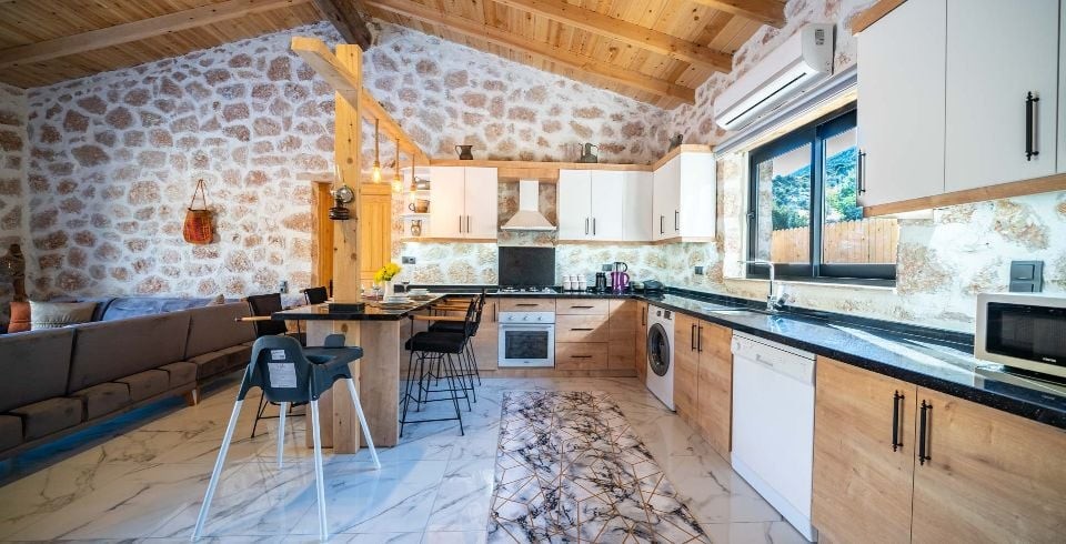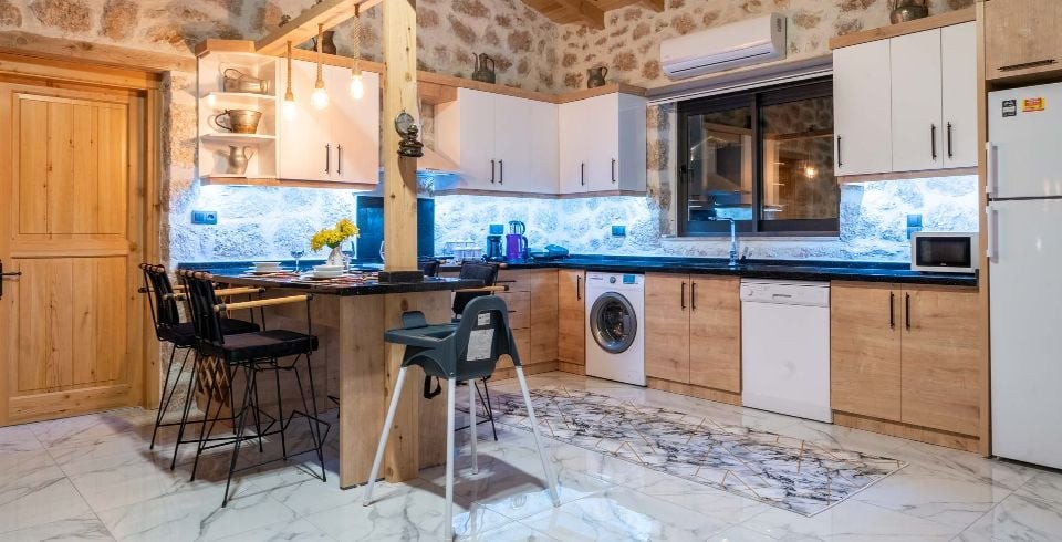 Mutfak: Villamızın mutfağında buzdolabı bulaşık makinası, çamaşır makinası, 4'lü ocak, ketıl, mikro dalga fırın, filtre kahve makinası 4 kişilik yemek takımı bulunmaktadır.