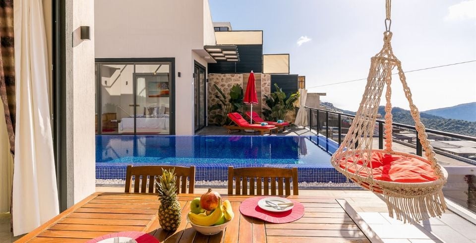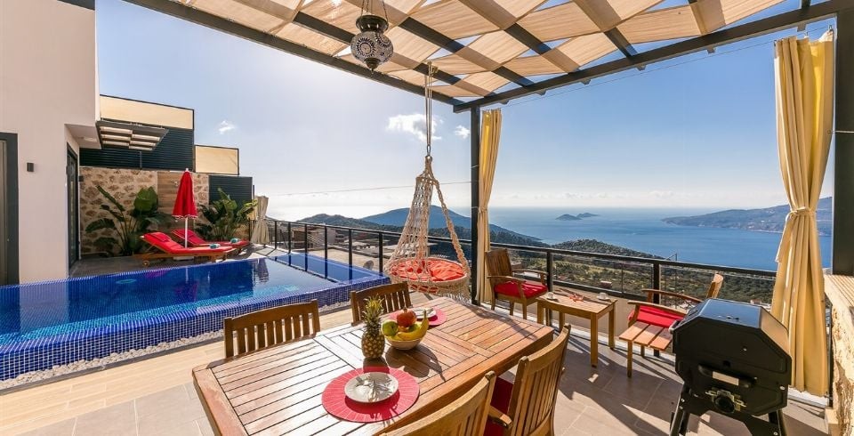 Doğayla iç içe, panoramik deniz manzarasına sahip Villa Ege, şehir merkezine kısa bir sürüş mesafesinde yer alır. Gözlerden uzak, huzurlu ve romantik bir tatil geçirmek isteyen çiftler için Kalkan’daki en özel balayı villalarından biridir.