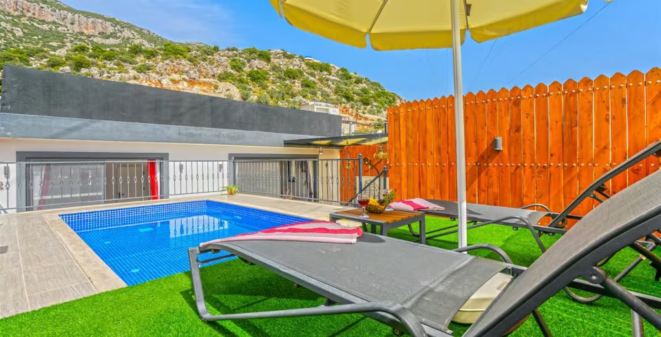 Villanın korunaklı özel havuzu, muhafazakar misafirler için rahat ve güvenli bir alan sunarken, merkeze yakın konumu sayesinde hem doğanın huzurunu yaşayabilir hem de Kalkan’ın sunduğu tüm olanaklara kolayca ulaşabilirsiniz. Havuz terasında keyifli bir gün geçirirken, villanın ferah ve modern iç mekanlarında konforlu bir yaşam alanının tadını çıkarabilirsiniz.