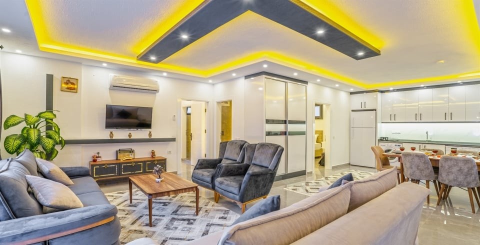Salon : Havuz terasına direkt çıkışı olan salonumuzda televizyon, modem, oturma grubu, klima, sehpa bulunmaktadır.
