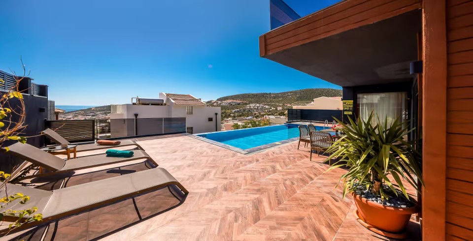 Kalkan’ın merkezi bölgelerinden Kızıltaş’ta konumlanan Villa Elmas, 3 yatak odasıyla 6 kişilik kapasite sunar. Geniş yaşam alanları, zarif detaylarla birleşerek konforlu bir tatilin kapılarını aralar. Deniz manzarası eşliğinde huzurlu bir atmosferde vakit geçirme ayrıcalığı sunar.