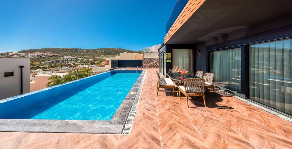Havuz etrafı korunaklı villalarımızda %100 görünmememe garantisi vermemekteyiz bu villalarımızda her zaman %5 sakınma payı mevcuttur.