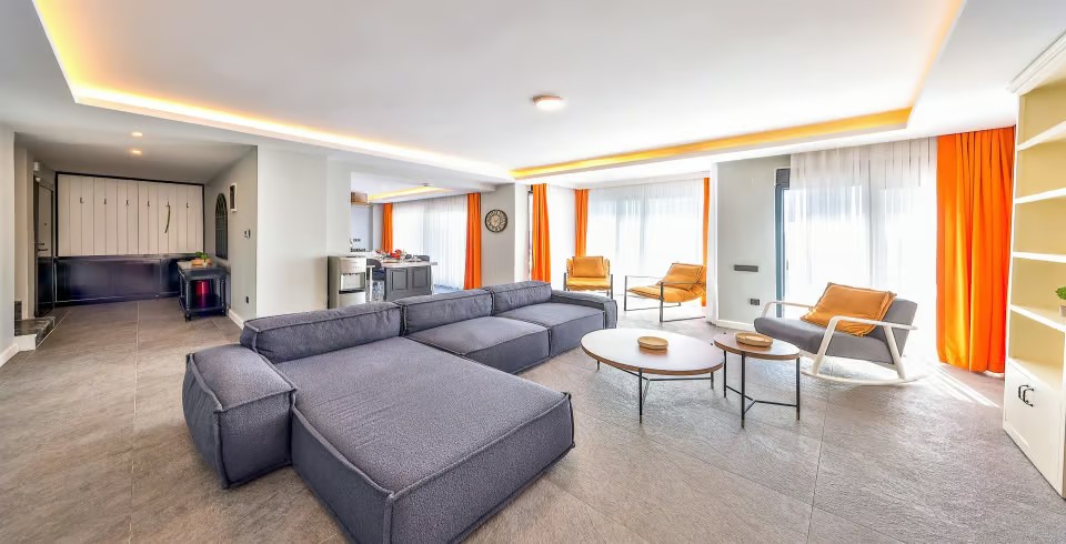 Salon : Konforlu salonunda modern oturma grubu, orta sehpa, Tv, klima bulunmaktadır.