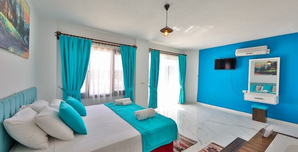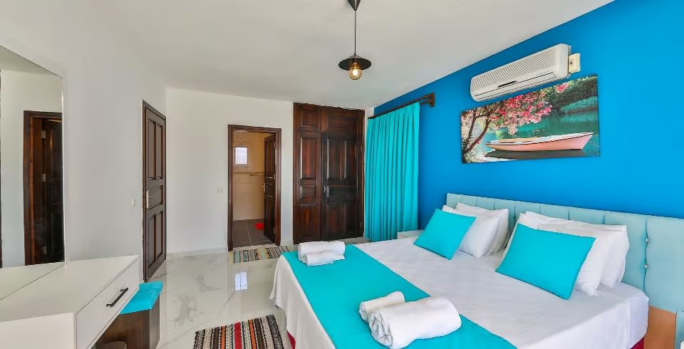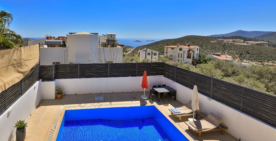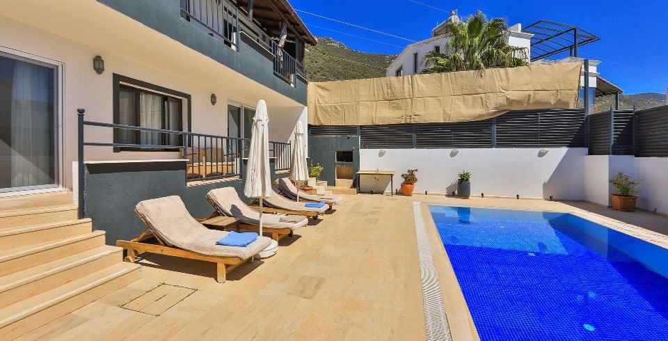 Kalkan Akbel bölgesinde 3 yatak odalı 6 kişilik konaklama kapasitesine sahiptir. Geniş aile ve arkadaş grupları için de tercih edilen villa özenle tasarlanmıştır. Ayrıca villa içerisinde bulunan çift kişilik süit yatak odasında keyifli zamanlar geçirebilirsiniz. Hem deniz hem de doğa manzarasını siz misafirlerimize sunup konum olarak Kalkan merkeze 5 dk. mesafede bulunmaktadır.