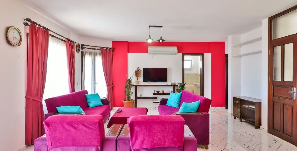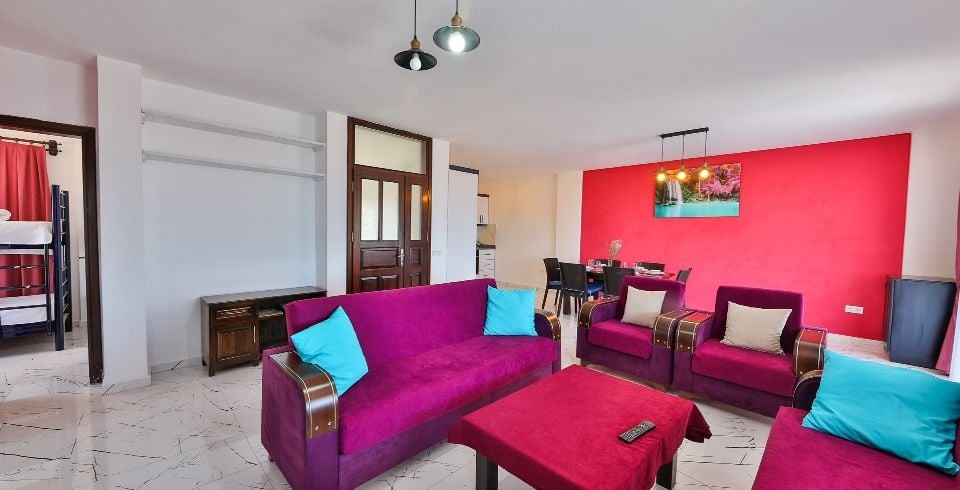 Salon : Doğa manzaralı (Havuz katında), oturma grubu, uydu alıcı, TV, klima, lavabo, ütü, ütü masası, elektrik süpürgesi, havuz kenarına çıkış ve kablosuz modem, tuvalet bulunmaktadır.