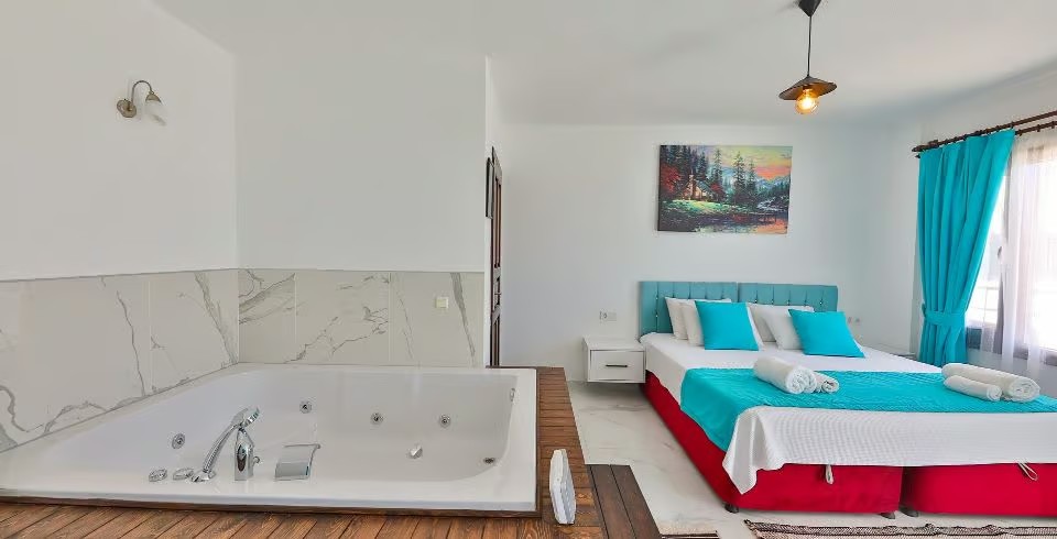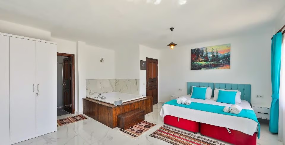 1. Yatak Odası : Çift kişilik yatak, jakuzi, klima, banyo, lavabo bulunmaktadır.