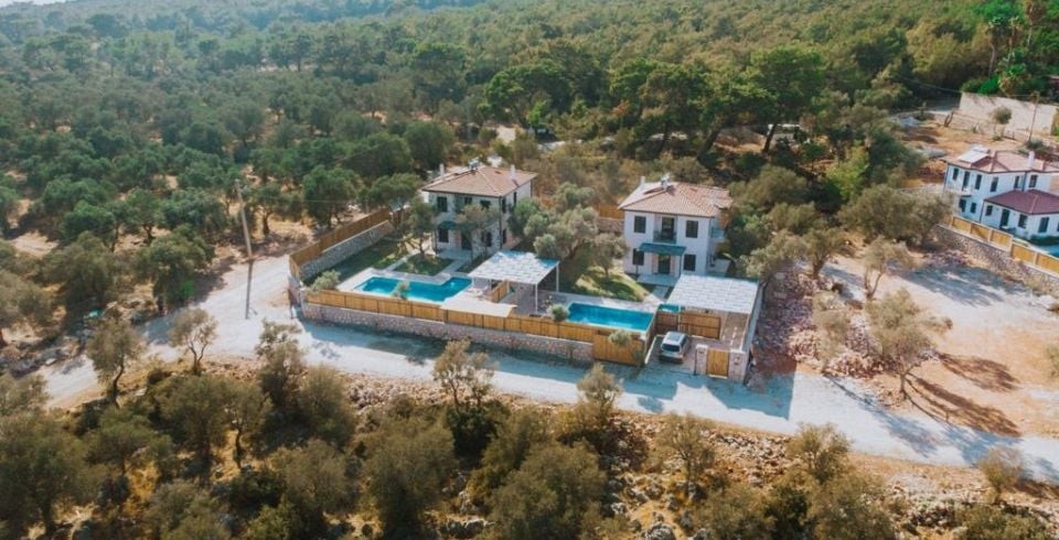 Havuz ve Bahçe : Çam ağaçları arasında, şemsiye, bahçe mobilyası, şezlong, mangal ve yemek masası bulunmaktadır.