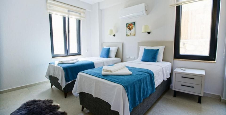 2. Yatak Odası : 2 adet tek kişilik yatak, klima, komodin, elbise dolabı, banyo ve lavabo bulunmaktadır.
