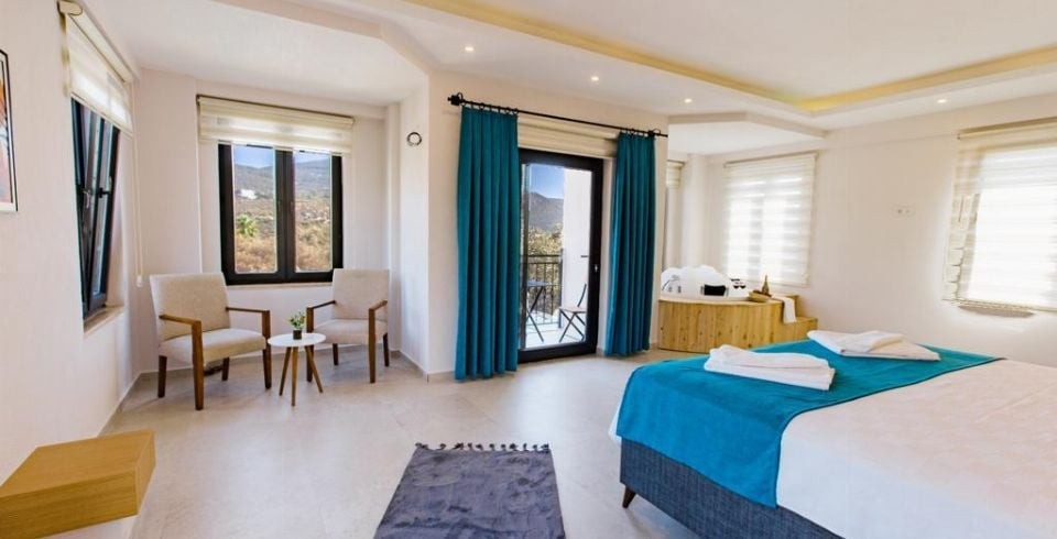 1. Yatak Odası : Çift kişilik yatak, klima, komodin, makyaj masası, elbise dolabı, jakuzi, sauna banyo ve lavabo bulunmaktadır.