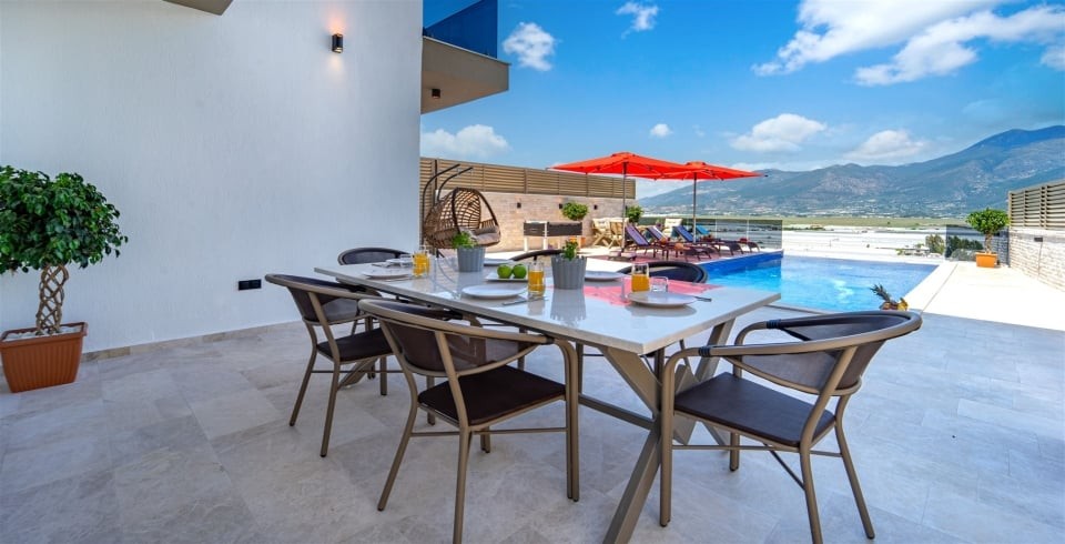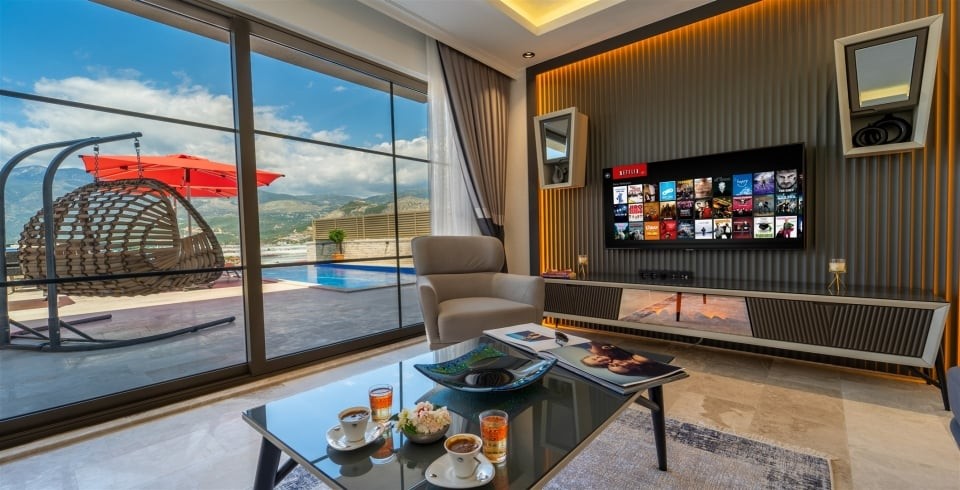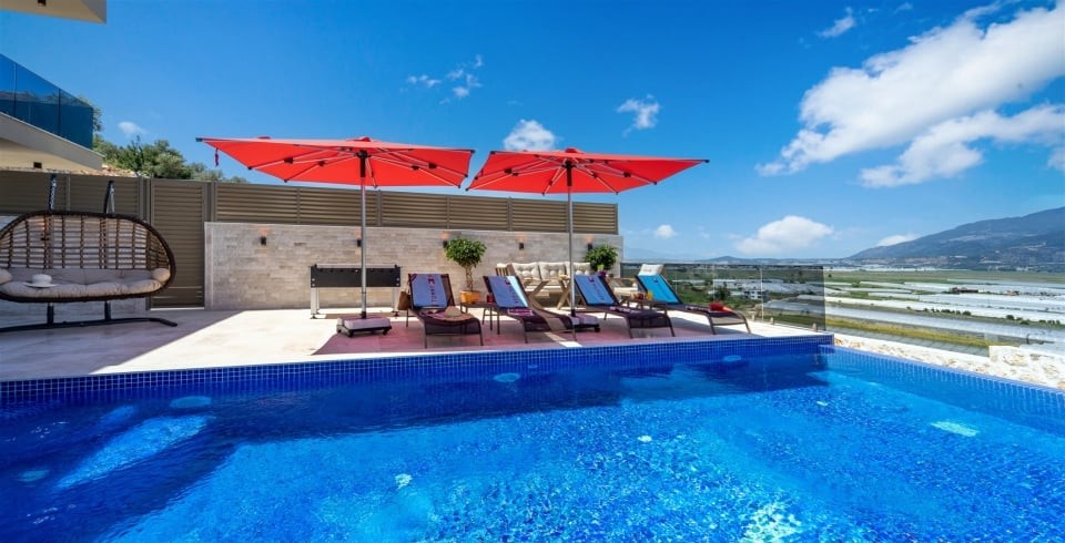 Havuz ve Bahçe: Özel yüzme havuzu, salıncak, şezlong, bahçe yemek masası, bahçe oturma grubu, barbekü, güneş şemsiyesi ve langırt bulunmaktadır.