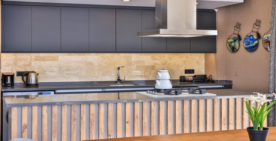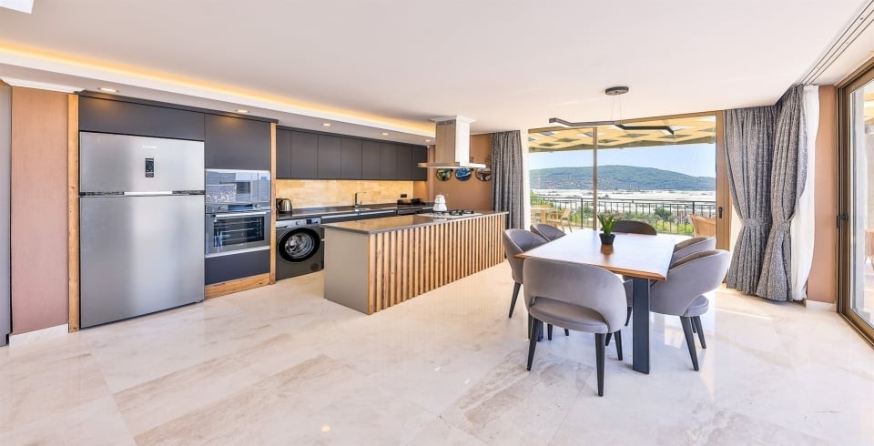 Mutfak: Villamızın mutfağında buzdolabı bulaşık makinası, çamaşır makinası, 4'lü ocak, kettle, fırın, kahve makinası yemek takımı bulunmaktadır.