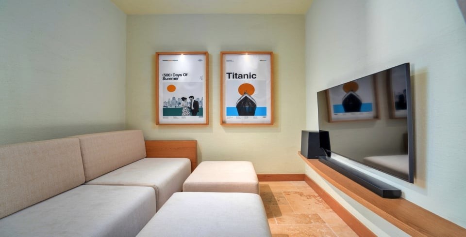 Zemin katta tam donanımlı mutfak, modern bir oturma alanı, sinema odası, sauna ve havuz terasına doğrudan açılan ebeveyn yatak odası yer alır. Geniş sürgülü cam kapılar, iç ve dış mekân arasında doğal bir geçiş sağlar. Birinci katta yer alan iki yatak odasından biri çift kişilik, diğeri iki tek yataklı odadır ve her biri deniz manzaralı balkona açılır. Villanın ön cephesinde yer alan özel sonsuzluk havuzu, sığ güneşlenme alanı, şezlonglar, gölgeli oturma bölümleri ve açık hava yemek alanı ile misafirlere keyifli anlar yaşatır.