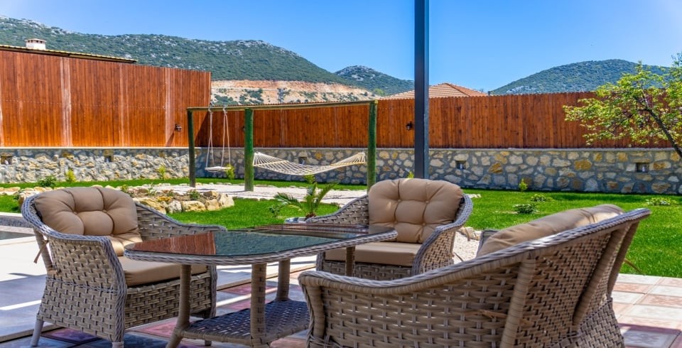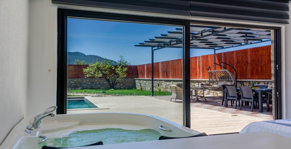 Villa Eylül, sizlere lüks ve konforu bir araya getiren muhteşem bir tatil deneyimi sunmaktadır. Villa, muhteşem doğa manzarasıyla Kalkan Bezirgan bölgesinde yer almaktadır. Geniş bir bahçeye sahip olan villa, yeşillikler içinde, şık mobilyaları ve dinlenme alanlarıyla dikkat çekmektedir. Geniş bir yüzme havuzu, güneşlenme terası ve barbekü alanı bulunmaktadır. Modern tarzda dekore edilen salon, şık mobilyalarla donatılmıştır. Ayrıca, geniş yatak odaları ve lüks banyolarıyla konforlu konaklama imkanı sunmaktadır. Gözlerden uzakta doğa ile baş başa kalabileceğiniz villamızın yatak odasında bir adet jakuzi de bulunmaktadır.