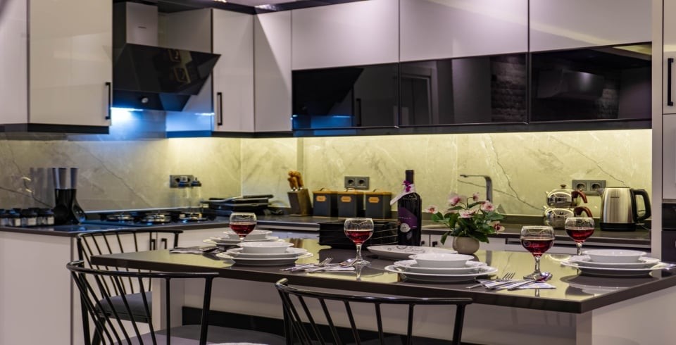 Mutfak: Villamızın mutfağında buzdolabı bulaşık makinası, çamaşır makinesi,4 lü ocak, kettle, mikrodalga fırın, 4 kişilik yemek takımı bulunmaktadır.
