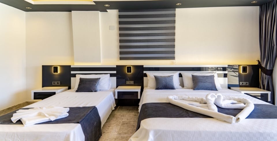 2. Yatak Odası: 1 adet tek kişilik, 1 adet çift kişilik yatak, klima, elbise dolabı, komodin, makyaj masası, banyo ve tuvalet bulunmaktadır.