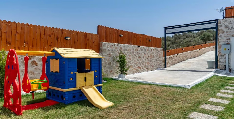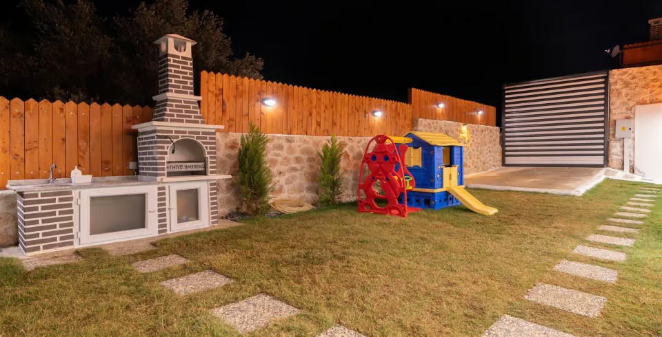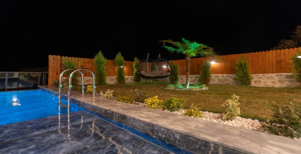 Havuz ve Bahçe : Villamızın bahçesinde korunaklı yüzme havuzu,şezlong,güneş şemsiyesi,oturma grubu,yemek masası ve sandalyeleri,barbekü ve langırt bulunmaktadır.