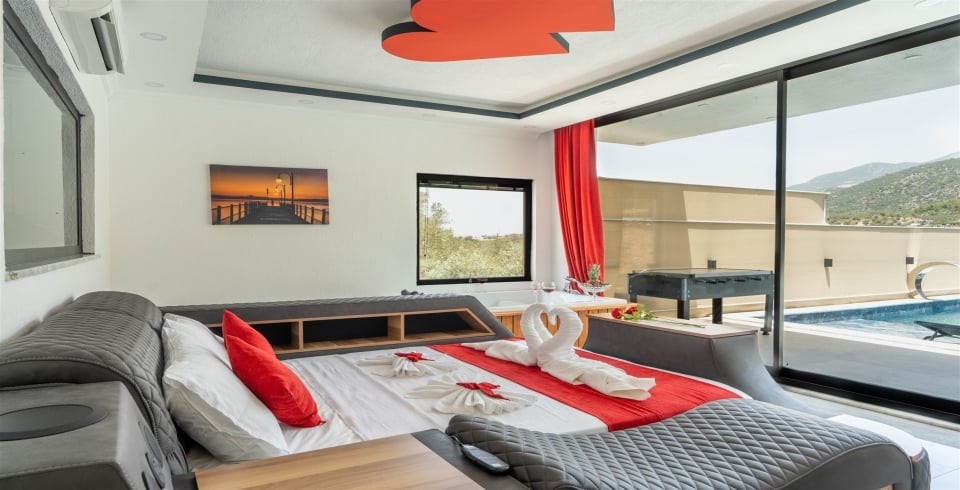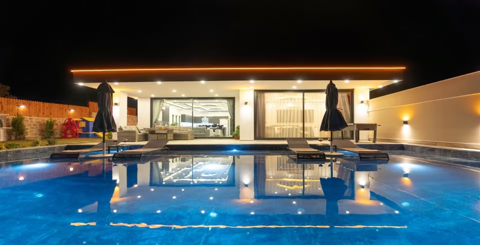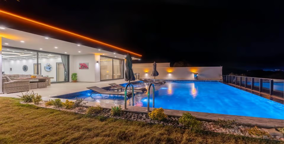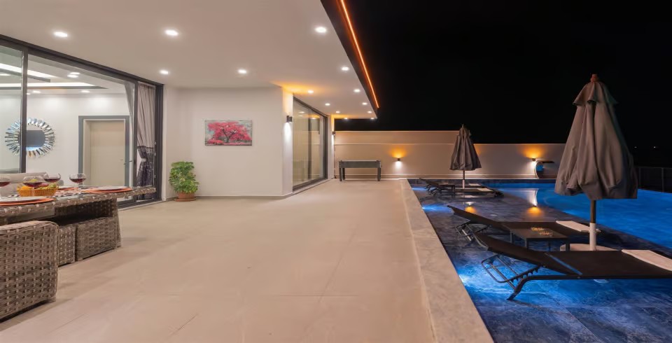 Villa Eylül Exclusive, Kalkan'ın Çavdır bölgesinde yer alan 2 yatak odalı ve 4 kişilik kapasitesiyle hem balayı çiftleri hem de çekirdek aileler için tasarlanmış lüks bir tatil villasıdır. Korunaklı özel havuzu, jakuzili ana yatak odası ve geniş bahçesiyle hem mahremiyet hem de konfor ön planda tutulmuştur. Modern dekorasyonu, ferah yaşam alanları ve doğa manzarasıyla keyifli bir tatil vadeder.