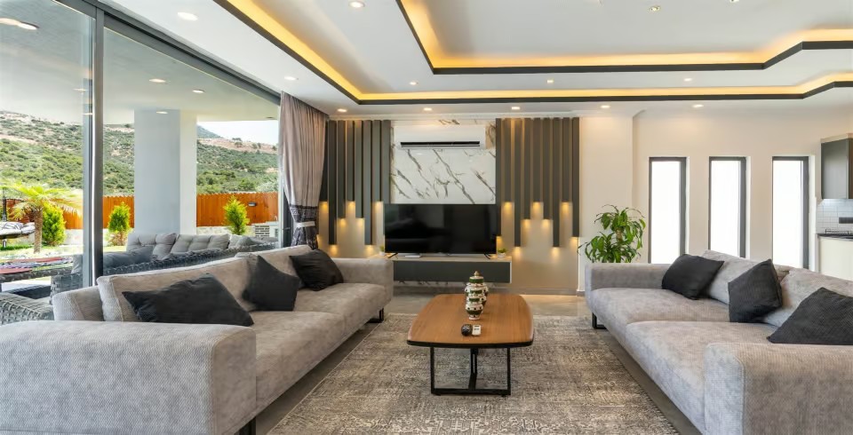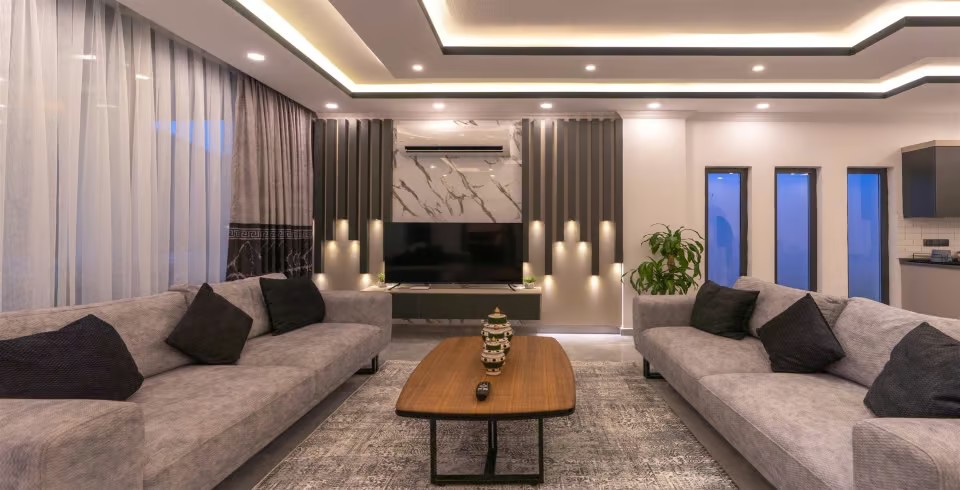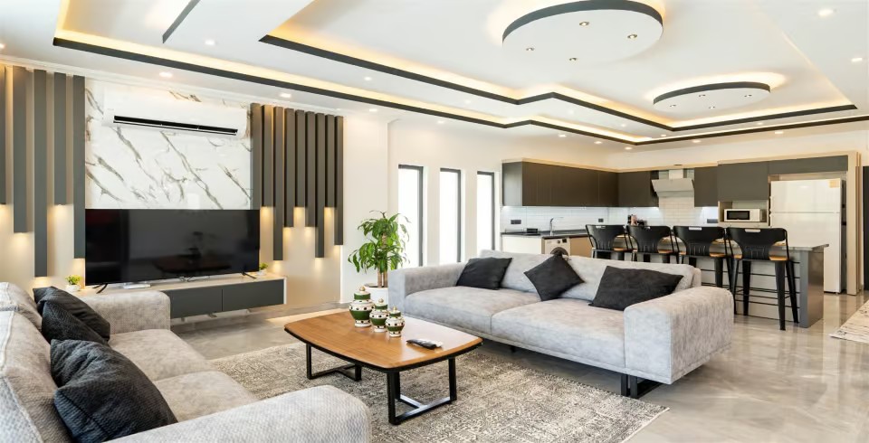 Salon : Modern ve şık tasarlanmış salonda; oturma grubu, orta sehpa, Tv, Tv ünitesi, klima bulunmaktadır.