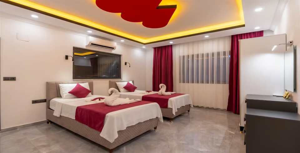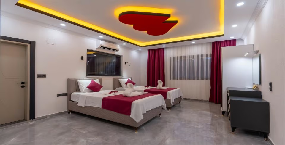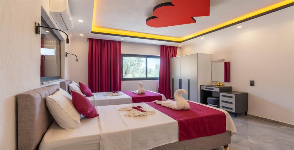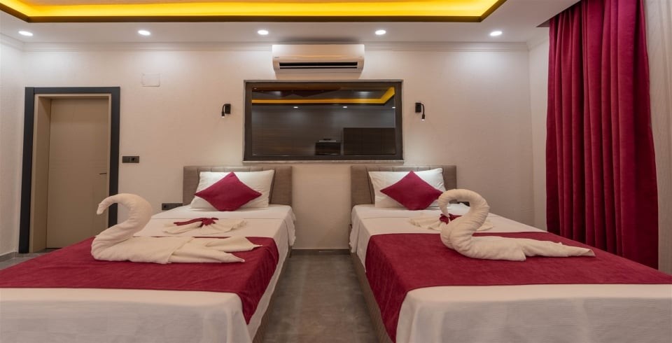 2. Yatak Odası : 2 adet tek kişilik yatak, klima, elbise dolabı, komodin , tuvalet ve banyo bulunmaktadır.