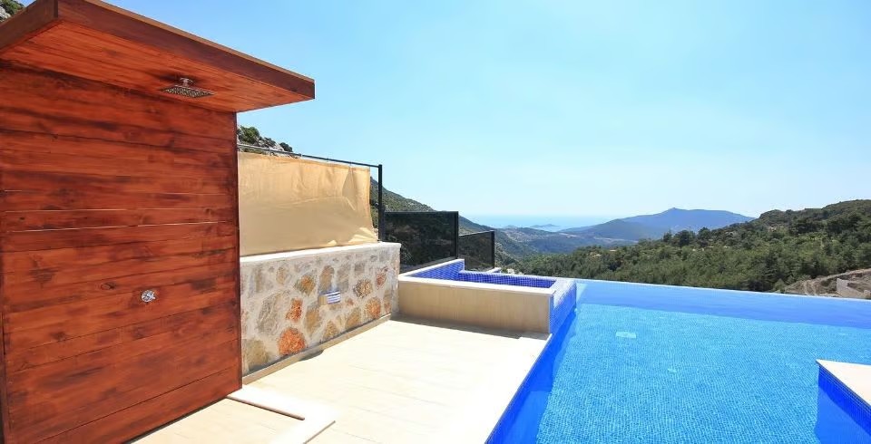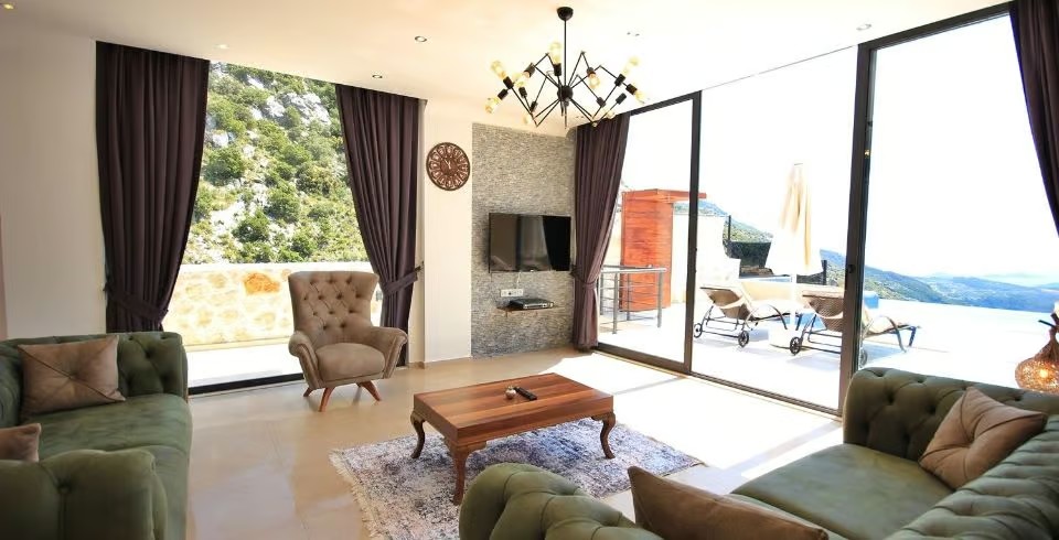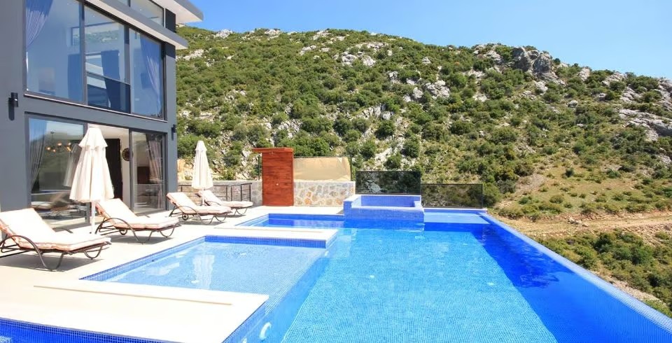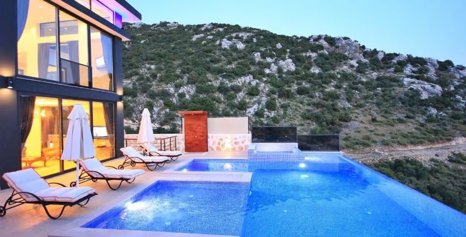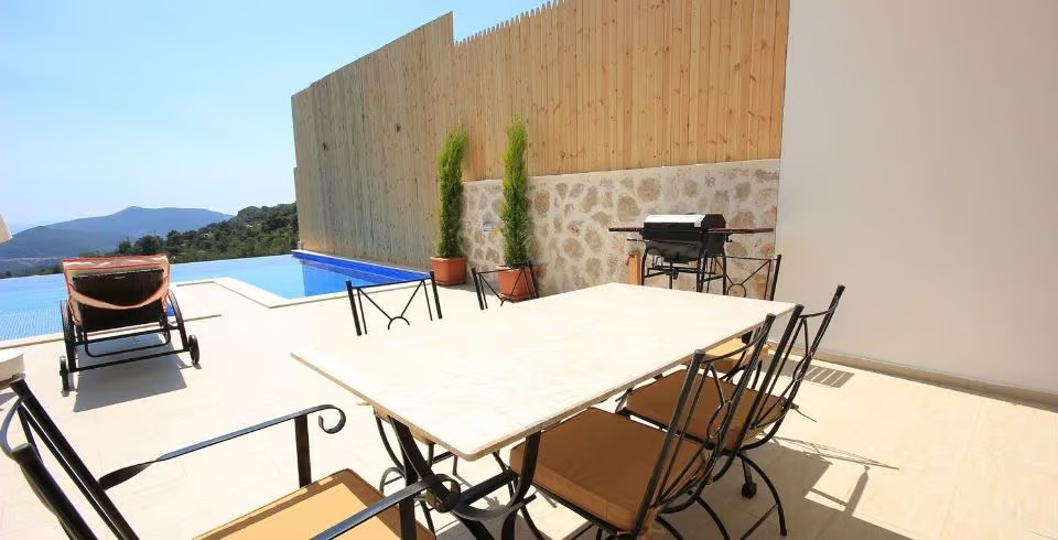 Kiralık Yazlık Villa Falez, Kalkan İslamlar bölgesinde muhteşem bir manzaraya karşı konumlanan havuzu tam korunaklı villamızdır. Panoramik deniz ve doğa manzarasına sahip villamızın, havuz terası da ferah ve geniş olarak tasarlanmıştır. Misafirlerimizin rahatlığı düşünülerek tasarlanan villamız da, konforlu mobilyalar kullanılmıştır. Tatilde ihtiyacınız olabilecek her şey Villa Falez de sizler için düşünüldü.