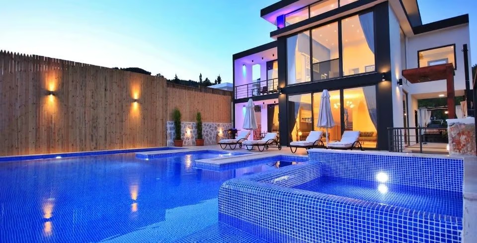 Havuz ve Bahçe: Korunaklı muhafazakar yüzme havuzu, şezlong, şemsiye, bahçe oturma grubu ve keyif köşesi bulunmaktadır. Çocuklu aileler için küçük çocuk eğlence yerimiz mevcuttur. Villamızın havuz terasında mangal bulunmaktadır.