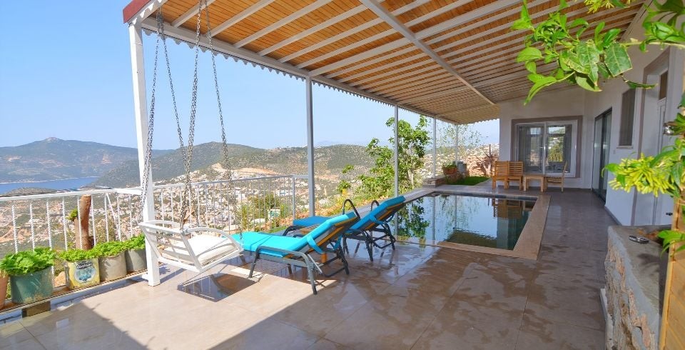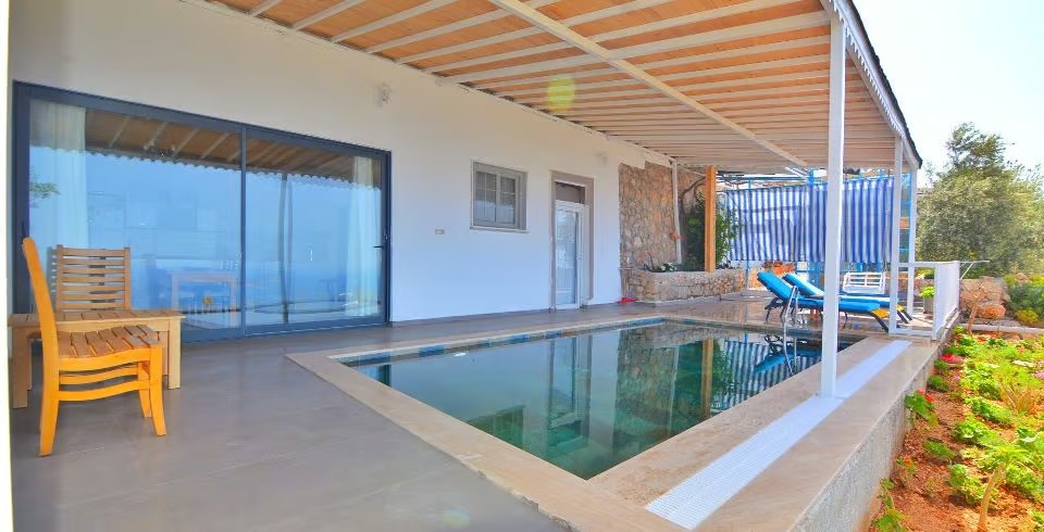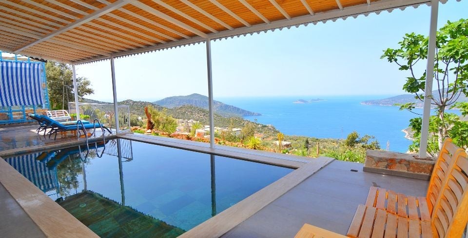 Havuzu korunaklı villalarımızda sizlere %100 görünmeme garantisi verememekteyiz. Bu villalarımızda her zaman %5 sakınma payı mevcuttur. Kalkan; coğrafi konumu itibariyle yamaç üzerinde yer alan Kaş’a bağlı turistik bir mahalledir.