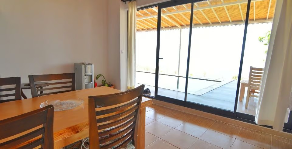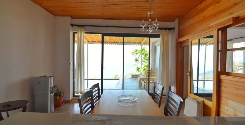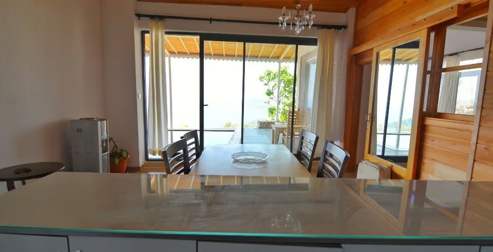 Salon : Havuz terasına direkt çıkışı olan büyük, konforlu salonumuzda oturma grubu, klima, LCD TV, sehpa, uydu alıcı bulunmaktadır.