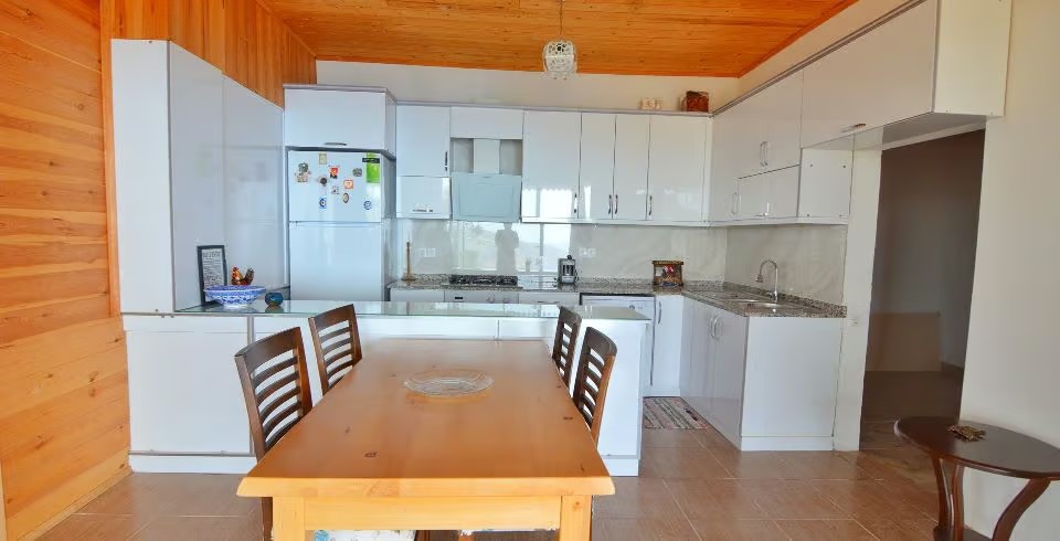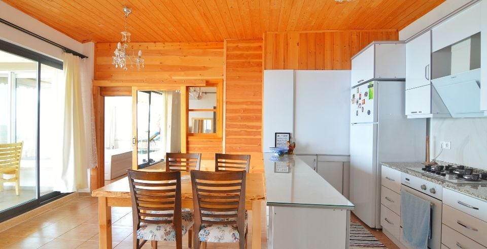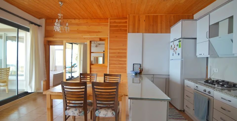 Mutfak : Villa Familyanın mutfağına adımını attığınızda kendinizi leziz yemekler yaparken bulabilirsiniz. Eksiksiz araç-gereçleriyle gözleri büyüleyen mutfağımızda buzdolabı, bulaşık makinesi, fırın, 4’lü ocak, mikrodalga fırın, elektrikli su ısıtıcısı, tost makinesi, 4 kişilik yemek masası, yemek takımları, çatal-bıçak takımları, tencere-tava takımları ve bardaklar bulunmaktadır.