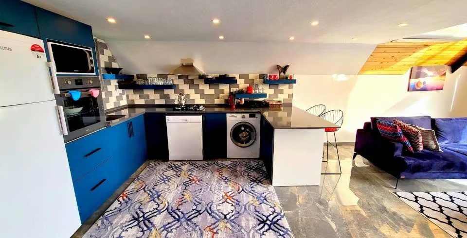 Mutfak : Bir evin mutfağında olması gereken her şeyi villamızda bulabilirsiniz. Modern Amerikan mutfağımızda buzdolabı, çamaşır makinesi bulaşık makinesi, 4’lü ocak, fırın, mikrodalga fırın, ekmek kızartma makinesi, elektrikli su ısıtıcısı, fırın, çatal-bıçak takımı, tencere-tava takımları gibi bütün mutfak araç-gereçleri eksiksiz bir şekilde bulunmaktadır.