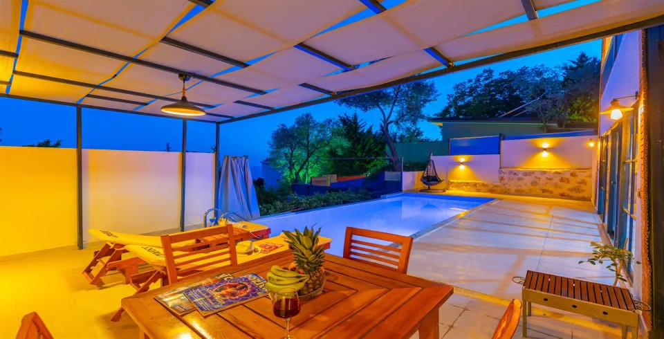 Kaş'ın İslamlar bölgesinde doğayla iç içe konumlanmış olan bu özel kiralık villa, 2 kişilik konaklama kapasitesiyle özellikle balayı çiftleri ve muhafazakar misafirler için ideal bir seçenektir.
