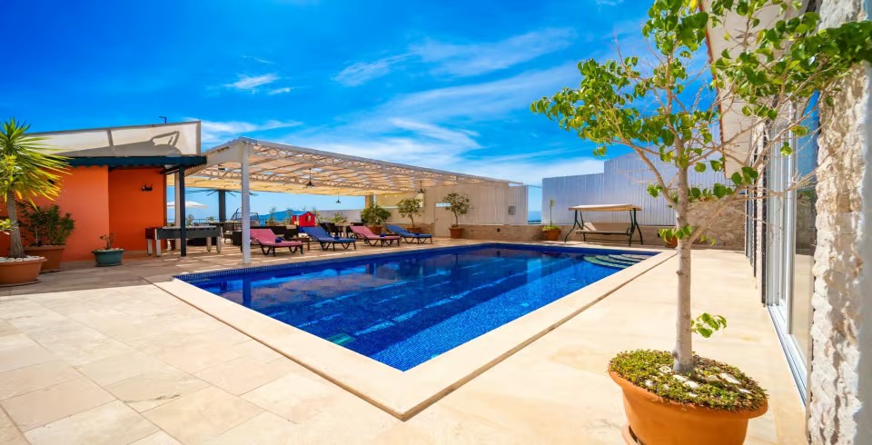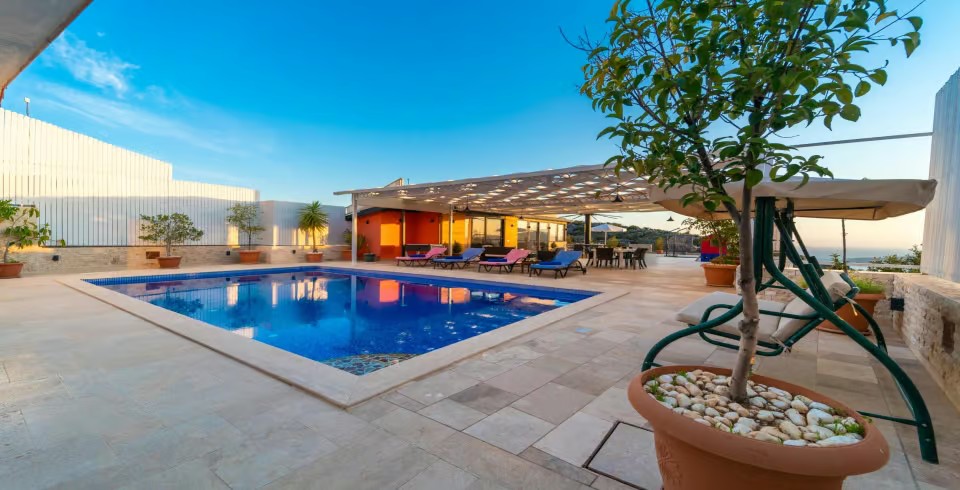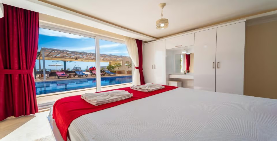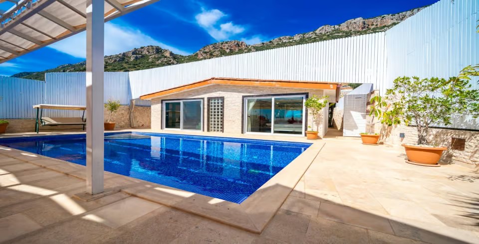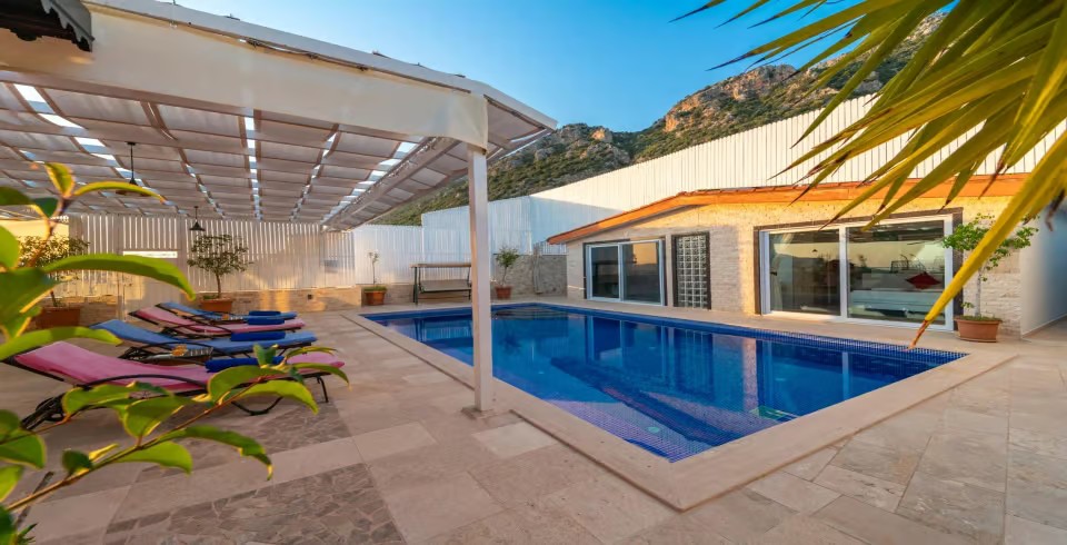 Kalkan Kördere  bölgesinde bulunan Muhafazakar Özel yüzme havuzlu villamızdır. Villamız korunaklı havuzlu olum gizliliğe önem veren aileler ve balayı çiftlerimiz için son derece uygun bir tercih olacaktır. 3 yatak odalı 6 kişi konaklama kapasitesine sahiptir. 1 yatak odasında jakuzi bulunmaktadır. Açık mutfak salonumuz bulunmakta olup villamızın havuz terasında mangalımız bulunmaktadır. Yazlık villamızın bulunduğu konumdan kalkan manzarası  gözükmektedir. Kalkan merkeze özel aracınız ile 5 dk. mesafede bulunmakta olup ulaşım gayet kolaydır.
