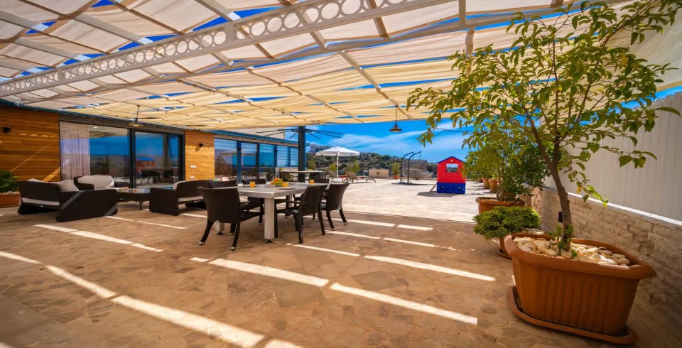 Havuz ve Bahçe : Villamızın özel yüzme havuzun muhafazakar olup dışardan kesinlikle görünmemektedir. Şezlong, şemsiye, yemek masası, barbekü bulunmaktadır.