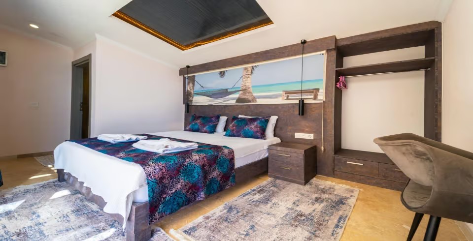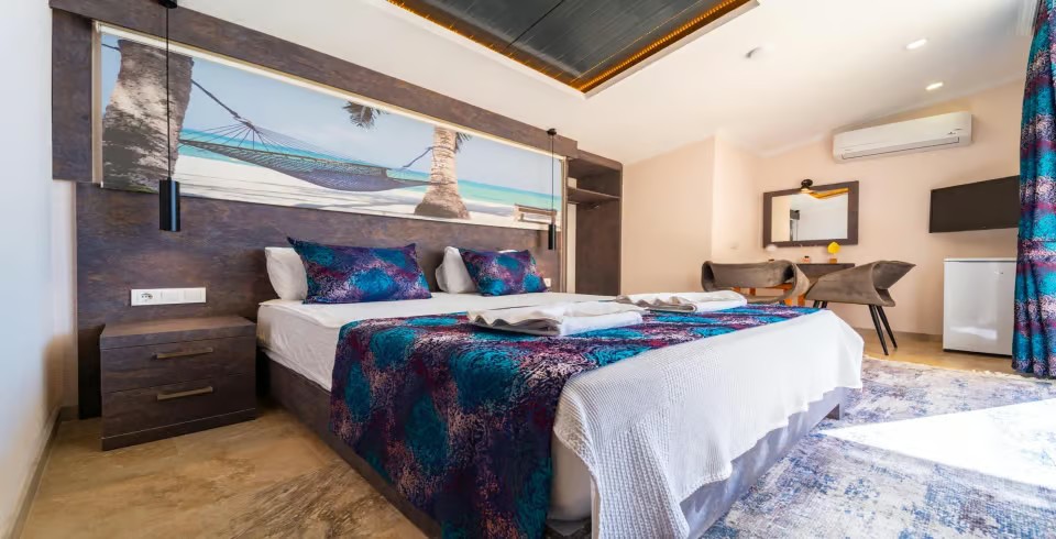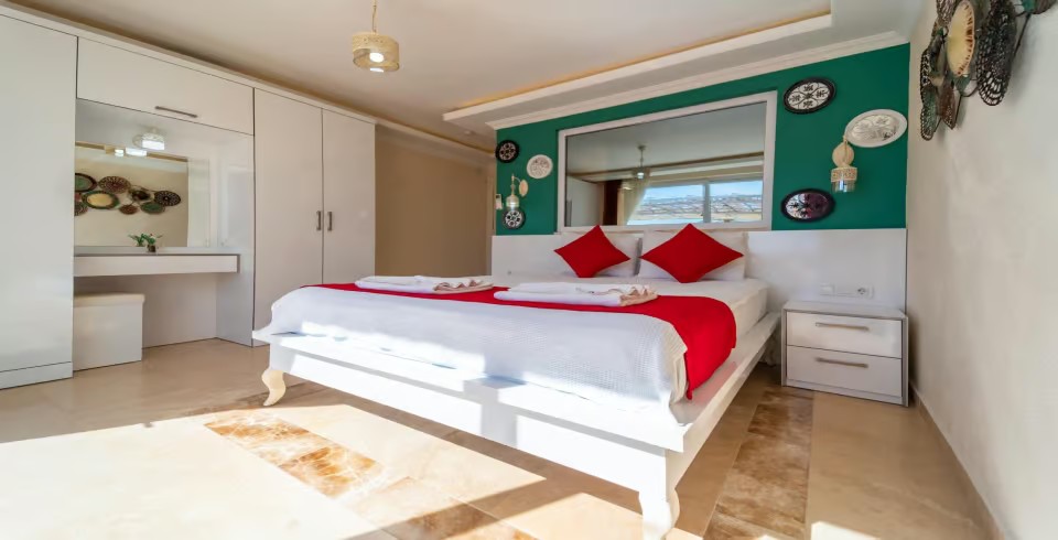 3. Yatak Odası : çift  kişilik yatak, komodin, klima, makyaj masası, elbise dolabı, banyo ve tuvalet bulunmaktadır.