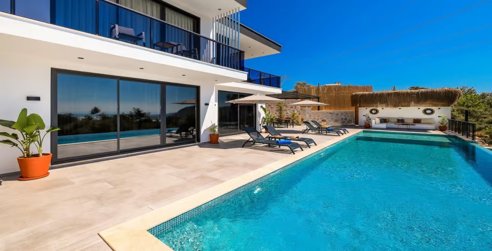 Muhteşem panoramik doğa manzarasına hakim Villa Fi Manor, Kalkan üzümlü mevkisin de bulunan havuzu korunaklı kiralık villadır. İnşaatı 2023 yılında tamamlanan villamız 2 yatak odalı 4 kişi konaklama kapasitelidir. Konumu Üzümlü ana yol kenarında bulunan villamızın ulaşım kolay olup aynı zamanda, son derece modern eşyalarla ile dekore edilmiştir. Süit yatak odasında çift kişilik jakuzisi bulunan villamızda, tüm yılın yorgunluğunu üzerinizden atabilir sevdiklerinizle unutamayacağınız bir tatil deneyimi yaşayabilirsiniz.