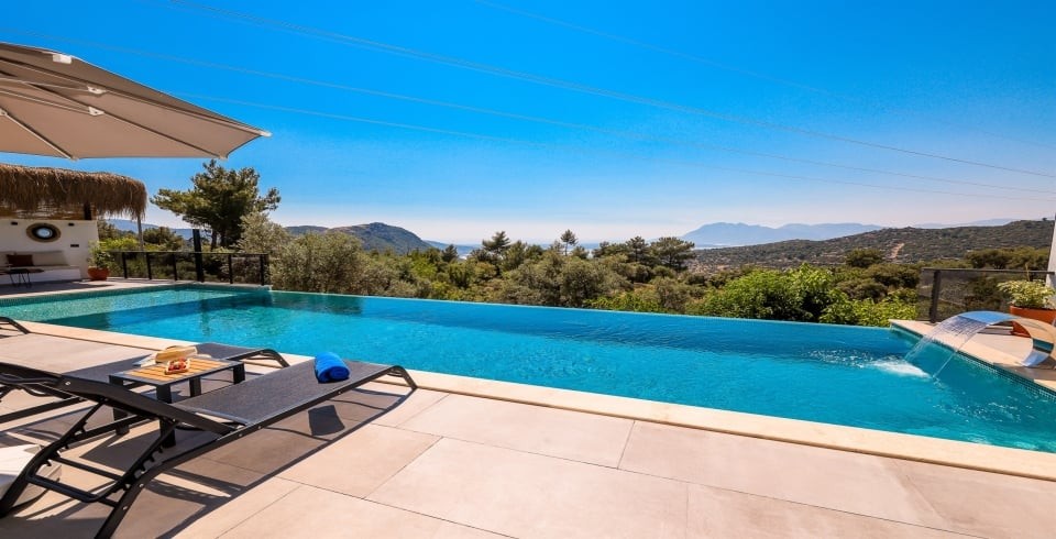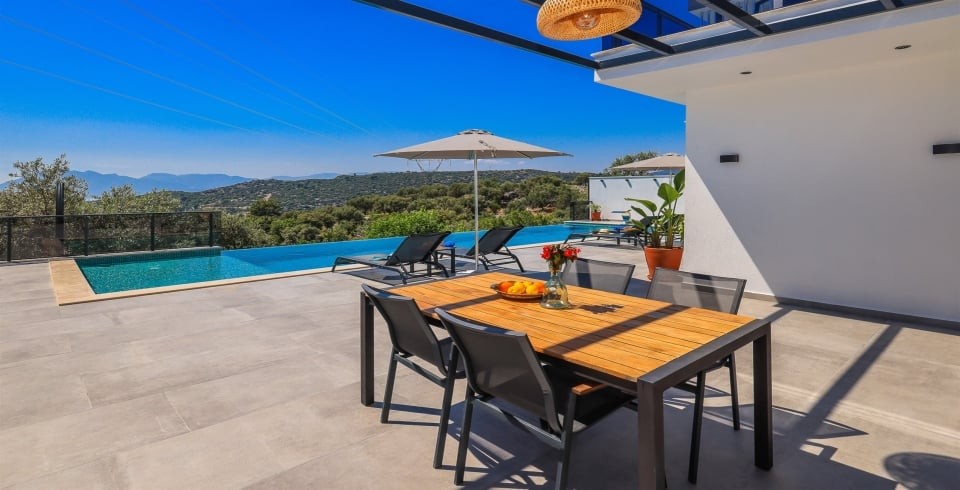 Havuz ve Bahçe: Doğa manzaralı korunaklı özel yüzme havuzu, şezlong, güneş şemsiyesi, bahçe oturma alanı, bahçe yemek masası, barbekü bulunmaktadır.