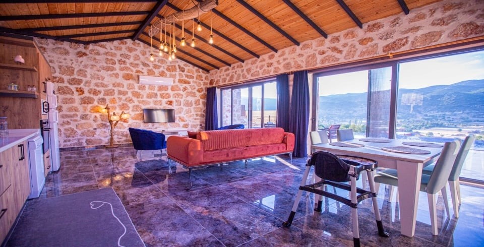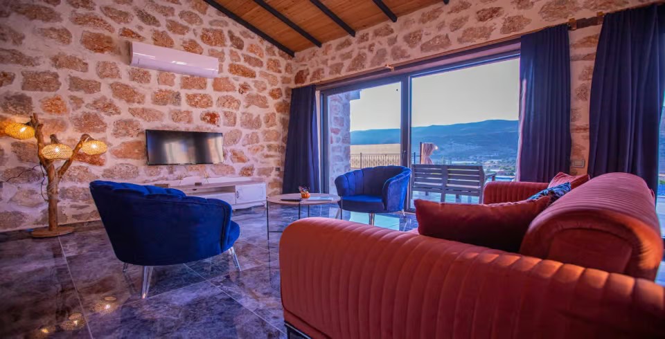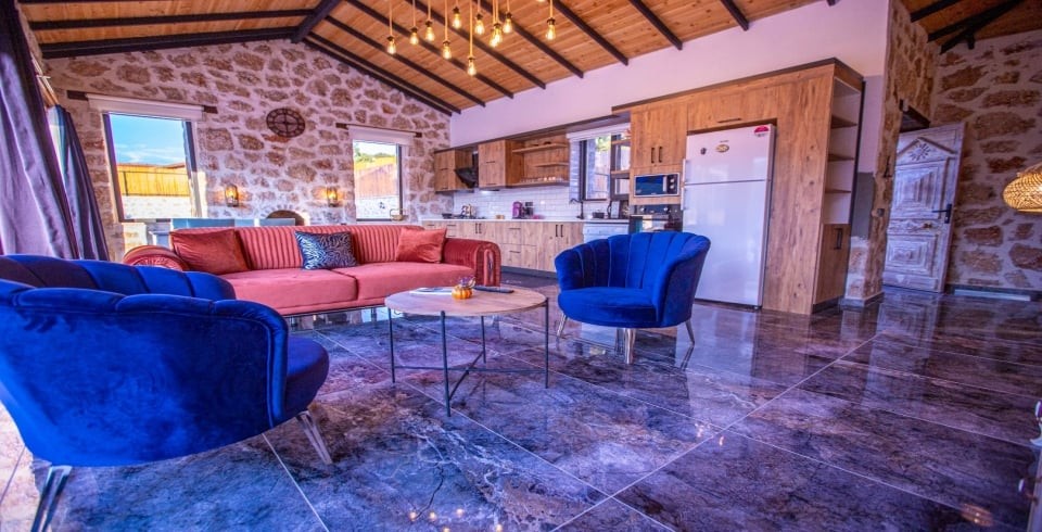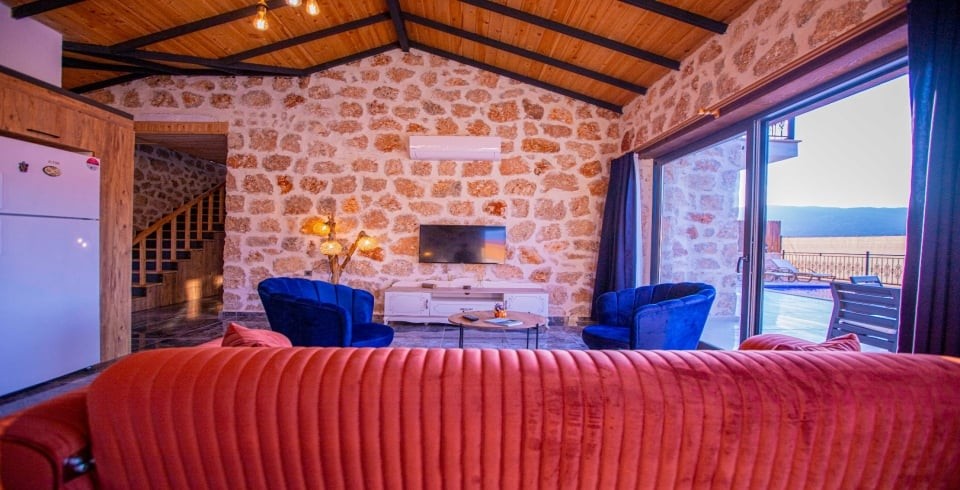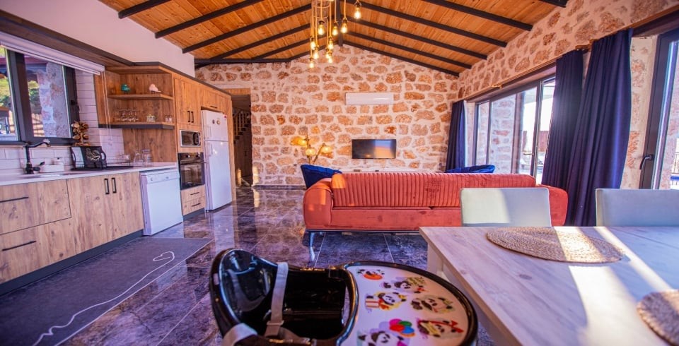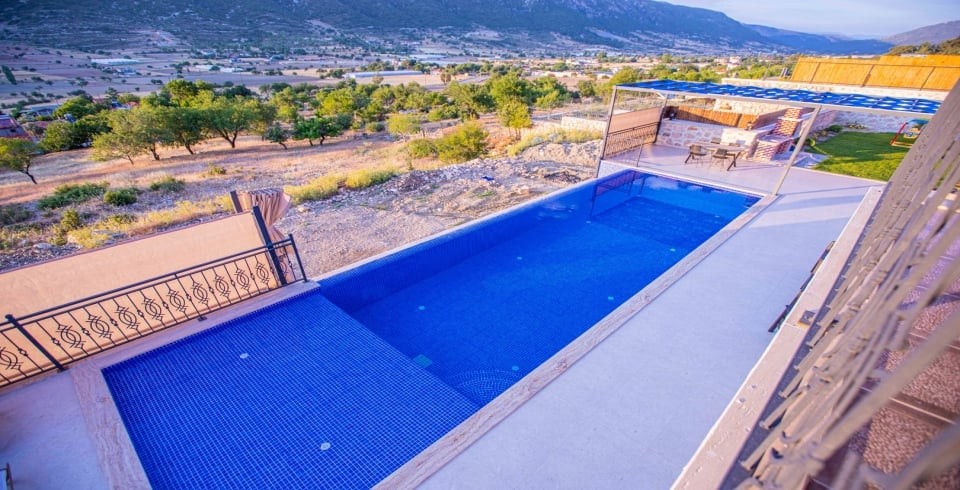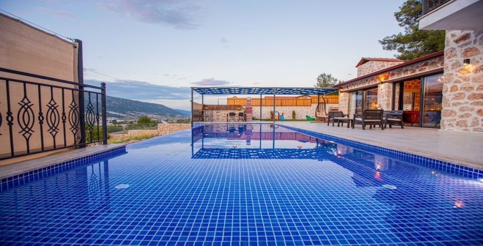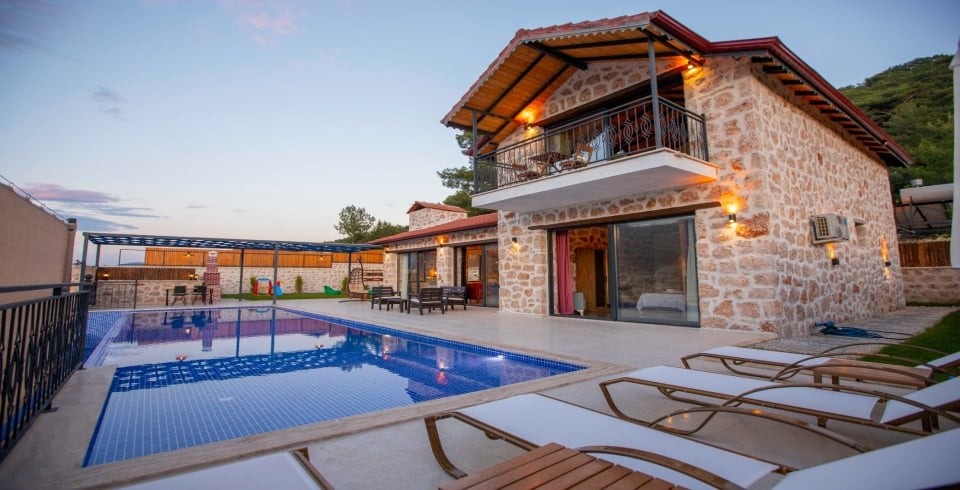 Kalkan Sarıbelen Köy'ünde bulunan kiralık yazlık villa 2 yatak odalı ve 4 kişi konaklama kapasitesine sahiptir. Taş yapıya sahip olan villanın havuz terası oldukça geniş tasarlanmış olup çocuk parkı, salıncak, şezlonglar ve güneş şemsiyesi aynı zamanda mangal yapabilmeniz için barbekü bulunmaktadır. Doğa içerisinde sessiz sakin bir konumda olan Villa Fiesta'nın içerisinde ise suit yatak odaları, jakuzi ve mutfak salon kısmı bulunmaktadır. Amerikan mutfağında yemek yapabilmeniz için tüm araç gereçler mevcuttur. Korunaklı villa olan tatil evi hem balayı çiftleri hem de çocuklu aileler için uygun olup Kalkan merkeze araçla 15 dakikalık mesafede yer almaktadır.